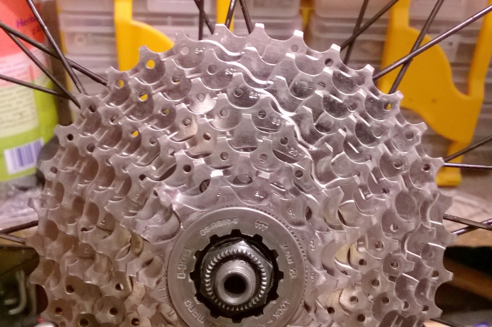 Najmniejsza koronka wygląda dla mnie na startą ale taka była fabrycznie. Czyżby te wycięcia były dla lepszej zmiany przełożeń?