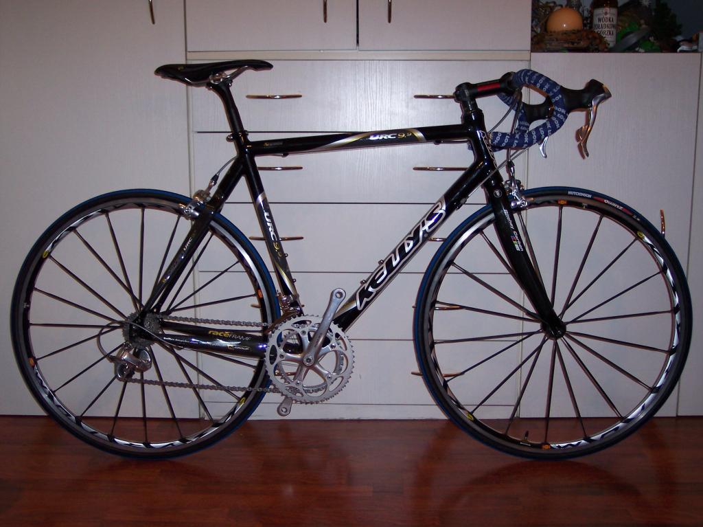 sirspider Napisano 1 Grudnia 2007 Napisano 1 Grudnia 2007 Uff i ja zakupiłem rowerek szosowy Teraz przesiadka z MTB na szose Udało mi się okazyjnie kupić Kellys URC 9.9 Jest to składak. Rama z 2005r. Widelec tylny carbonowy. Rowerek ma śmieszny przebieg (podobno około 1000km). Stan osprzętu jest idealny. Zero zużycia. Najbardziej ślady użytkowania (ale i tak naprawdę znikome) widać na tylnym kole. Ale to drobnostki. Rower wyglada jak nówka Jedyne co mi sie "średnio" podoba to owijka. Ale reszta jest bombowa Nareszcie mam troche carboniku Waga raczej na pewno poniżej 8kg. Dorwe wage to sprawdzę. Mam jeszcze do kompletu pedały LOOK, ale ich jeszcze nie zakładałem i... nie wiem czy założe. Musze przymierzyć bloki czy do moich butów specialized z MTB podejdą Jak nie, to przykręcam pedały z MTB Nie będę się za bardzo rozpisywał. Wszystko na fotce widać. Osprzęt - grupa dura ace. Koła - Mavic Ksyrium SL kokpit (mostek + kierownica + podkładka carbonowa) Bontrager race lite Stery - Ritchey WCS Carbon. Rower kupiłem od gościa, który prowadzi sklep rowerowy. To był jego prywatny rower. Zapłaciłem za niego mniej, niż kosztuje nowa rama z widelcem Oto fotka mojej ślicznotki PS: Kierownica i siodełko zostały już poprawnie ustawione