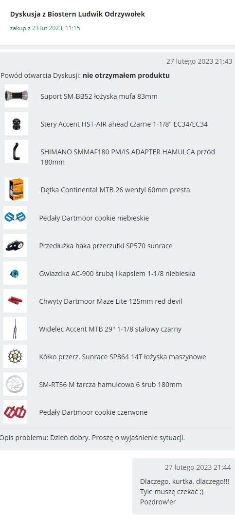 To prawda, wielu spięć i nieprzyjemności zaoszczędziłby głupi mail z informacją o opóźnieniu ze strony sklepu. "Przepraszamy, mieliśmy błąd/sprzedaliśmy stacjonarnie/wprowadziliśmy złą ilość...dostawa będzie opóźniona o X dni". Takie walenie w ciula jest niefajne i czasami rezygnuję z takich zamówień "w imię zasad", nawet jak mi się w ogóle nie spieszy i mógłbym poczekać.