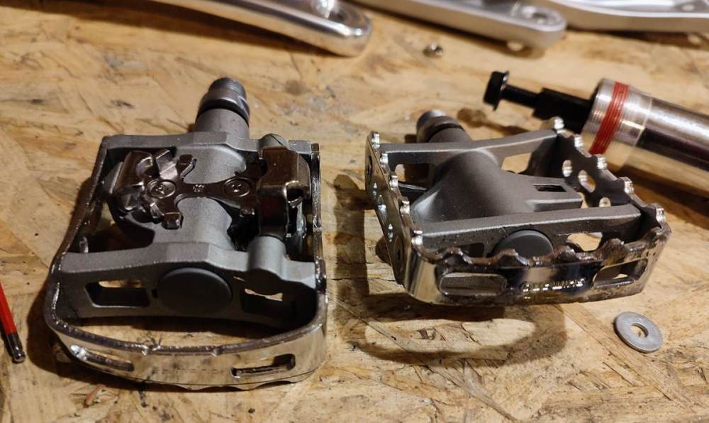 Dlaczego? Od lat w commuterze jeżdżę na dwustronnych i jakoś się nie zabiłem. Poprzednie przestały działać bo postanowiłem je rozkręcić, wyczyścić, nasmarować i po ponownym złożeniu okazało się, że jeden się samoczynnie skręca podczas pedałowania i przestaje się obracać, mimo kilkakrotnego rozbierania i odpowiednio mocnego kontrowania. Co więcej, te poprzednie moje pedały wypinały się znacznie łatwiej niż Shimano m520, które mam w innym rowerze