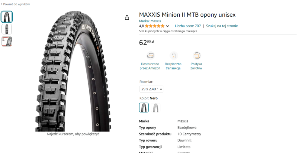 Ja też promkę Kinder niespodziankę na Maxxisy od Bezosa dziś odebrałem. Minionki DHF, jeden 2.5 drugi 2.6 i wszystko jasne. W sumie ceny mają sens, ta węższa za 63PLN a ta szersza za 67PLN. Tak to panie można gumy kupować 😁