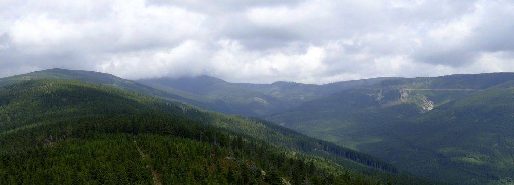 W dole Dolina Morawy. Zaczyna się mniej więcej z poziomu 600m, by osiągnąć 1200m (widoczna jasna kreska z prawej). Trasa technicznie łatwa, trochę kondycji potrzeba, widokowo super. Dla amatorów szybszych zjazdów kilka lat temu zrobili Single Trails Dolní Morava.