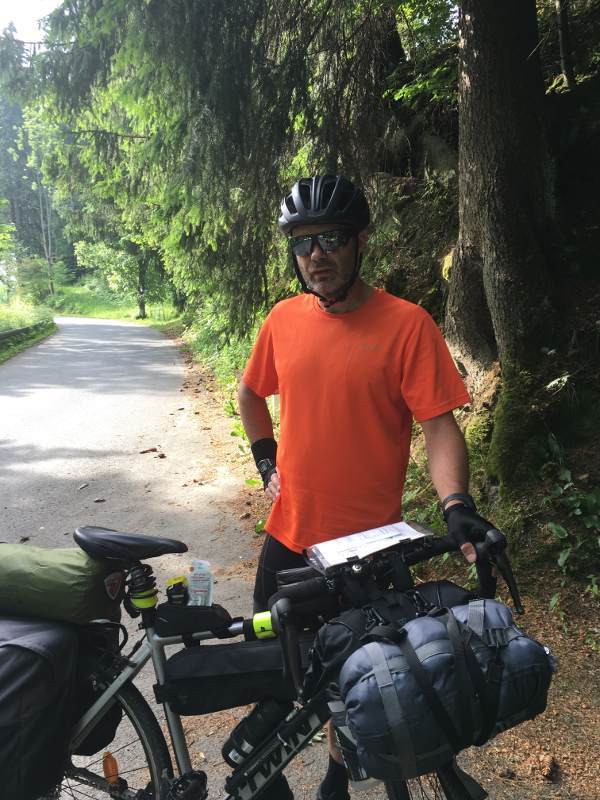 A powiedz, dlaczego - skoro z tyłu masz zwykłe sakwy, a więc nie idziesz twardo w bikepackingowy sznyt - nie założysz też zwykłych sakw z przodu? Przecież to wygodniejsze i łatwiejsze w użyciu, lepsze w jeździe - bagaż nisko. Widzę śpiwór na kierze, namiot na bagażniku? Dokładnie to wożę u siebie z przodu, bez worków.