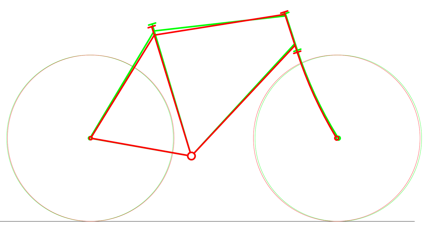 paulsen Napisano 28 Maja 2016 Napisano 28 Maja 2016 Aero - jazda po płaskim - mocno pochylona pozycja, aerodynamiczna rama, wysokie stożki w kołach, aerodynamiczne kierownica, mostek, sztyca, etc. bardzo sztywny (do sprintu), trochę dłuższy i dzięki temu stabilny. Nie wspina się tak ochoczo pod górę jak Lightweight (bo jest cięższy i ma cięższe koła); Lightweight - jazda po górach - pochylona pozycja, rama jak najlżejsza, aerodynamika na drugim planie, jak najlżejsze koła, ekstremalnie sztywny (każdy wat energii przy wspinaczce się liczy), krótki, zwrotny, nerwowy. Nie pojedzie po płaskim tak szybko jak Aero (bo nie jest aero, bo pozycja mniej pochylona); Endurance - jazda długodystansowa i po złej nawierzchni (np. bruk) - pozycja najbardziej wyprostowana, a co za tym idzie - wygodna, rama tłumiąca drgania, szersze widełki z miejscem na szersze gumy. Endurance nie pojedzie po płaskim tak szybko jak Aero (bo nie jest aero), nie wspina się tak ochoczo jak Lightweight (bo nie jest light), ale kiedy po 100 km bruku Aero i Lightweight leżą i kwiczą, to Endurance wciąż jedzie z uśmiechem. Porównanie geometrii w rozm. 56 cm. Czerwona - Kona, zielony - Canyony. Z tą klasyfikacją to nie do końca bym się zgodził, bo tu bardziej rozchodzi się o prowadzenie się roweru i sztywność ramy, której aerodynamika zmienia się także wraz z zastosowanymi kołami, ale to nie ten temat