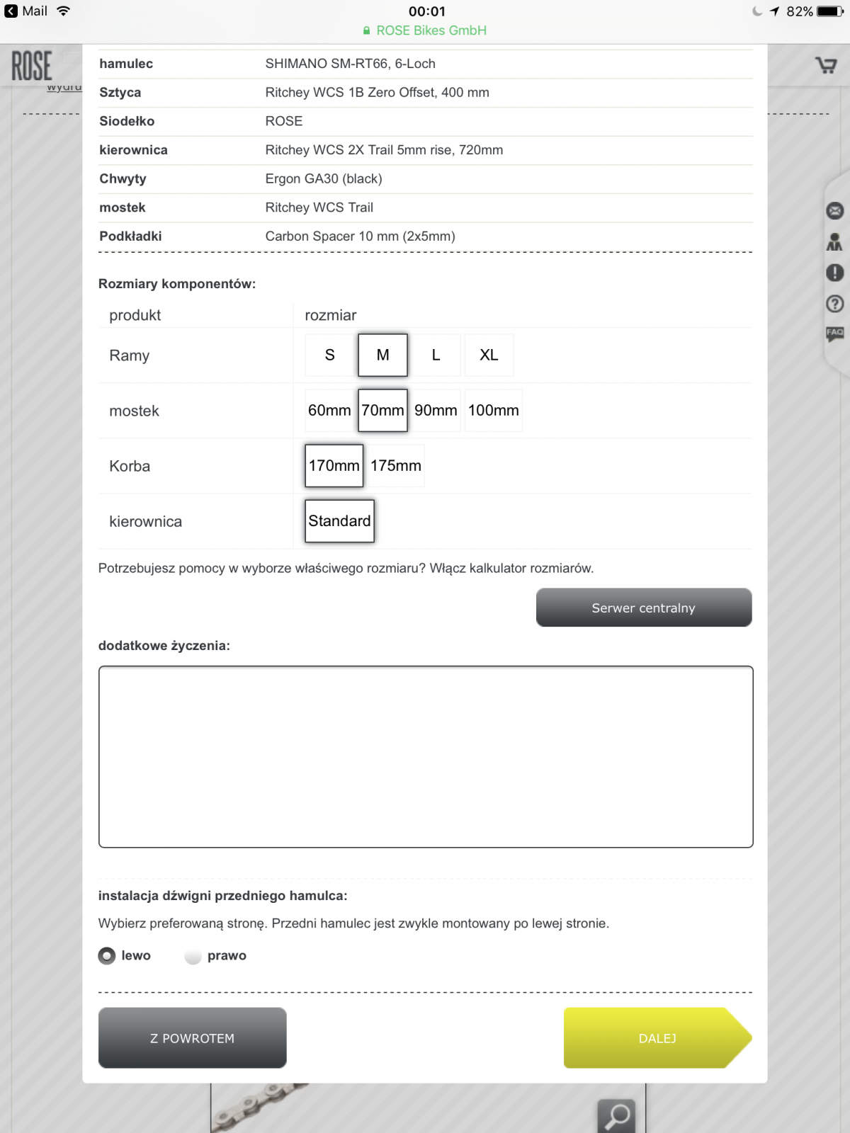 Mmataleo Napisano 26 Stycznia 2017 Autor Napisano 26 Stycznia 2017 Jestem załamany. W pracy rozmawiałem na szybko z przedstawiciele rose. I dogadałem się wstępnie z kupnem. Wchodzę do domu żeby zamówić a tu brak rozmiaru M a jeszcze 6 godzin temu był. Ani model sram ani shimano. Napisałem do Niego czy jest czy może jakis błąd albo może ktoś zrezygnuje. Powiedzcie mi czy L będzie na mnie za duży? 181 wzrost i 86 dl nogi. Dobra nie ma się co rozczulać jutro jak noe dostanę żadnej odpowiedzi czy są M albo dostanę ze już nie ma to nic na sile nie chce brać L za dużego. Wtedy pozostaje druga opcja unibike Expert. Chociaż tez jest ciężko dostać widziałem za 3799. Dlatego zapytam czy jest jakis rabat na 2017. Dziś rano jadę z kumplem do Bydgoszczy po ltd race 2017 i wczorajdostał rabat 10 % wiec liczę on unibike tez. Zob
