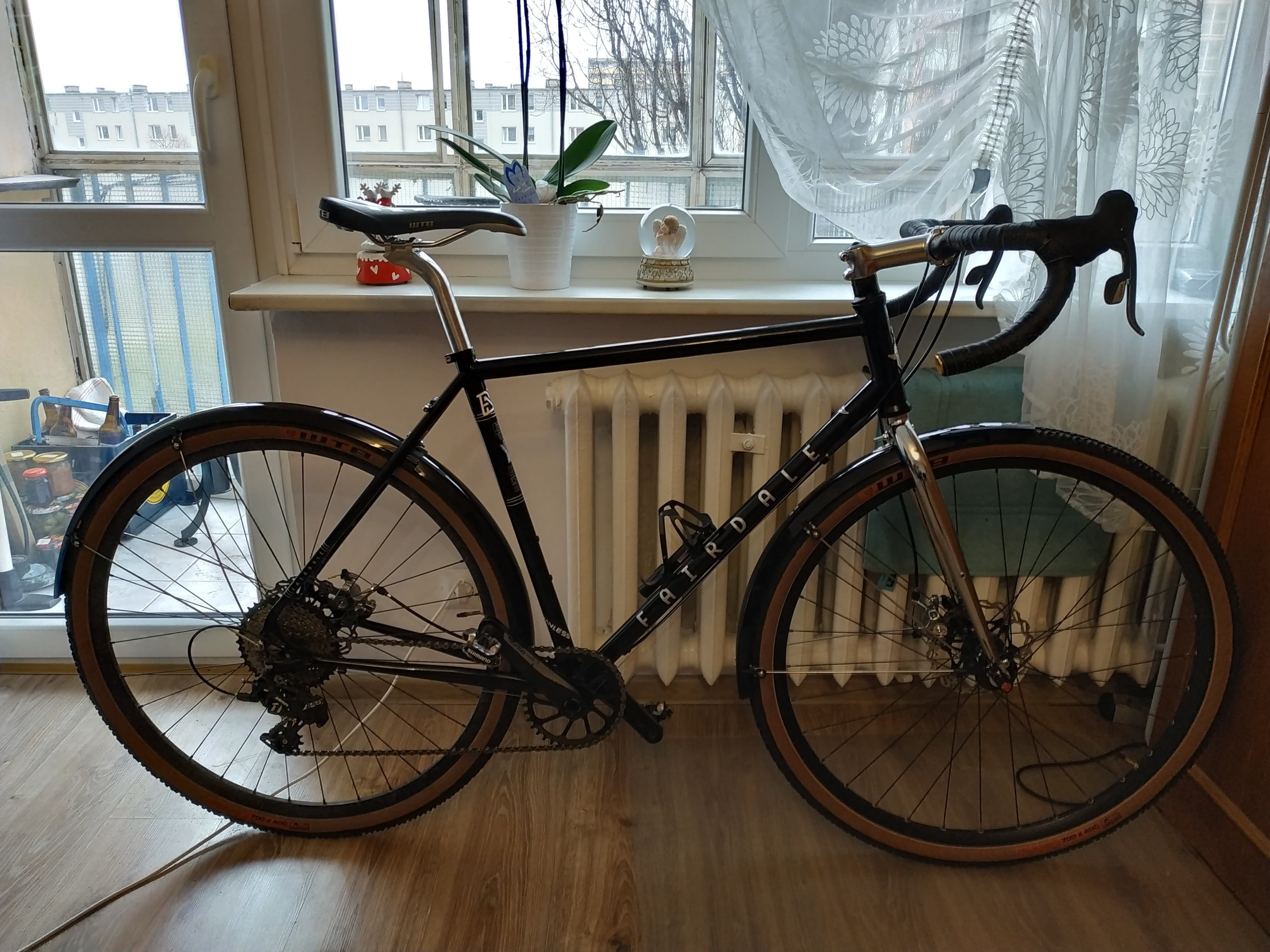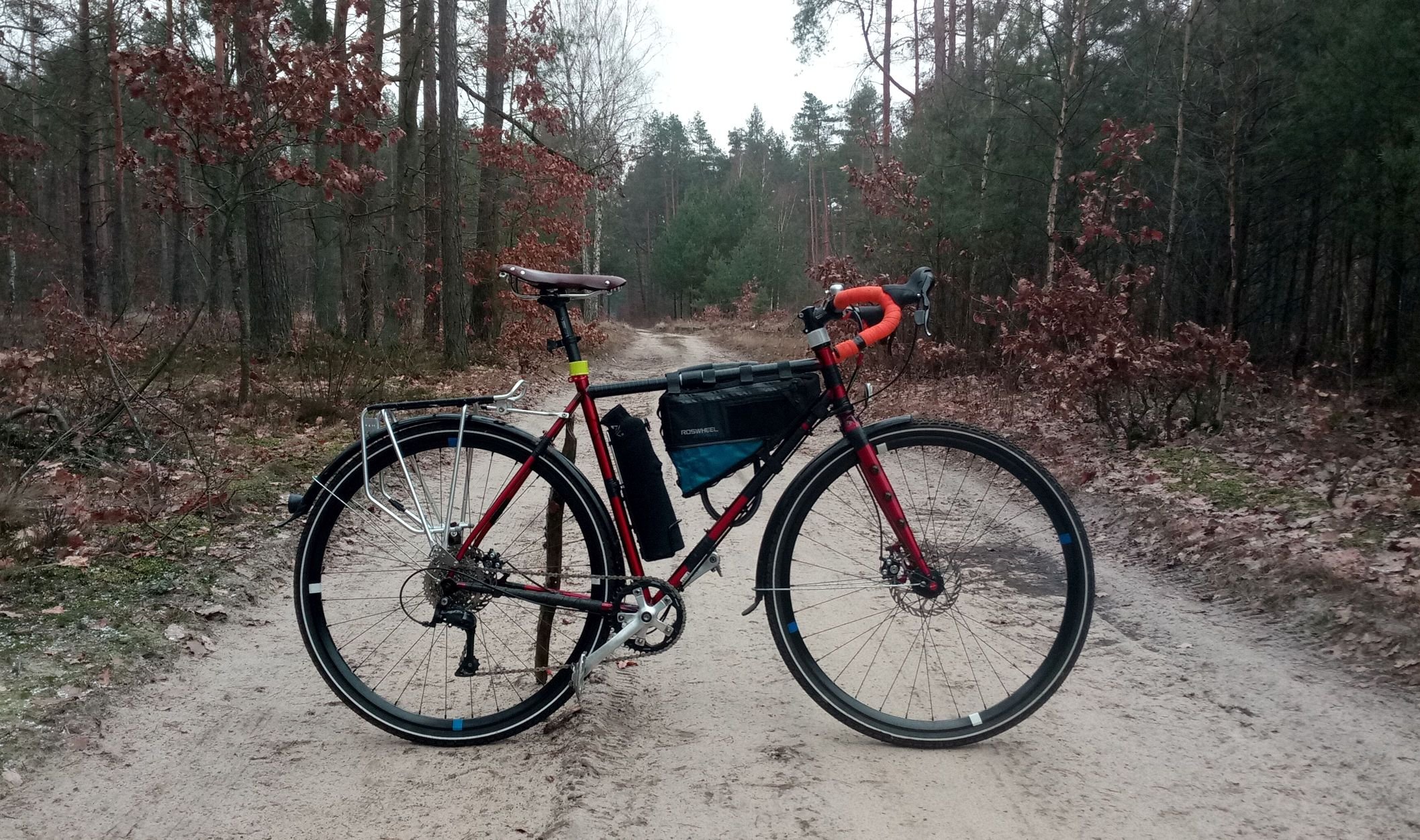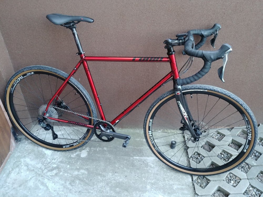 mario_awario Napisano 21 Stycznia 2019 Napisano 21 Stycznia 2019 Widzę, że ostatnio foty z zimowych jazd to +5 do fejmu, więc wrzucam i ja! Jamis Renegade Escapade, czyli stal na karbonowym widle. Koła widać jakie, opony conti speedking 700x35C, osprzęt 105/RS505, tylko zębatki w korbie zmienione na ultegra 46/36. Generalnie bardzo fajnie działa, heble piszczą na jak mokre albo zimne, ale hamują. Błotniki, bo jeżdżę tym do pracy na co dzień, takoż jak i w dniu zrobienia zdjęcia. Ostatnio bawiłem się w zmianę nachylenia kierownicy (FSA vero compact, bo niski drop), więc taka pozycja tymczasowa. Jeździ wspaniale, znakomicie się dogadujemy. Mam takie miejsca, gdzie z poprzednim rowerem po 3 latach znajomości musieliśmy hamować, żeby bezpiecznie pokonać zjazd, a na tym w zasadzie od razu na pełnym gazie lecimy Jeżeli chodzi o samą ramę, to zadowolony jestem bardzo z jednym ale: pierwsza gleba (dzieciaki z nosami w telefonach wyszły na drogę rowerową, hamowanie i łup przez kierownicę) i złamany hak przerzutki. Byłem w cholerę zaskoczony, bo nigdy wcześniej nawet nie wygiąłem haka, a ten pękł. Jak go potem obejrzałem, to wcale się nie dziwię, że pękł, bo jest tak zrobiony, że w jednym miejscu jest znacznie cieńszy, co uważam za wadę konstrukcyjną. Efekt tego był taki, że 2 miesiące się prosiłem o zamienniki w evanscycles.com, bo najpierw zgubili zamówienie, a potem zmieniali właściciela i przestali wysyłać za granicę i nadal nic nie dostałem. Znalazłem speca, który dorobił nowy hak na bazie złamanego (co widać, bo kolor zupełnie inny) i taniej, więc wziąłem 2 od razu. Wnioski końcowe: Stal jest super. Składanie roweru od zera to ogromna satysfakcja. Nietypowe haki przerzutek są be. 3 Cytuj