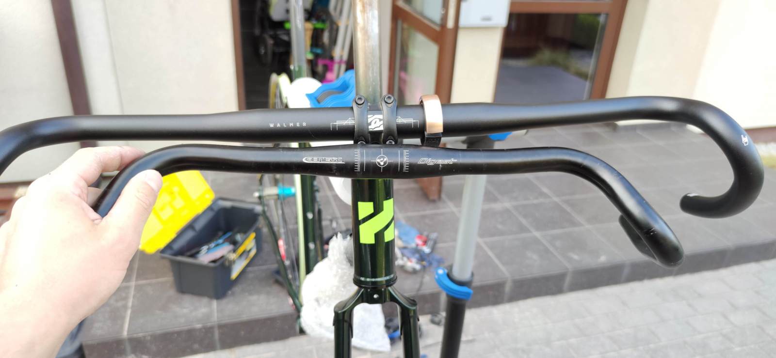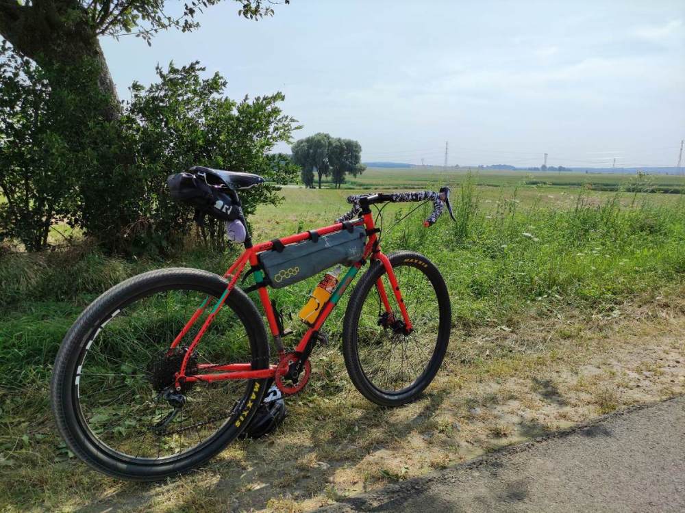 100lar3k Napisano 14 Sierpnia 2021 Napisano 14 Sierpnia 2021 (edytowane) U mnie projekt prawie na ukończeniu. Dzisiaj zaliczyłem w końcu pierwszą porządną jazdę. Pozycja jest prawie kanapowa, bardzo wygodna [prawie jak na mieszczuchu ]. Jedynie na stojąco w dolnym chwycie mi coś nie pasuje jutro będzie z innym mostkiem i wtedy się zobaczy. Oczywiście rura sterowa, jak już będę pewny pozycji pójdzie do skrócenia i nie będzie już tych kolorowych podkładek. Kierownica jest naprawdę wygodna i mega szeroka. Chwyt na łapach daje mi już duże poczucie stabilności. Szerokość naprawdę dużo zmienia. Napęd zostaje sram rival z przodu na pewno będzie zębatka owalna, tylko z rozmiarem się upewnię. Korba pewnie też wleci od srama, ale to za jakiś czas pewnie. Prześwit pozwala założyć opony o szerokości około 40mm więcej w tym rowerze nie jest mi potrzebne. Torebka jest bardzo fajna i naprawdę pojemna. P.S. Już dawno nie nacykałem tyle zdjęć podczas jazdy rowerem. Edytowane 14 Sierpnia 2021 przez 100lar3k 7 Cytuj