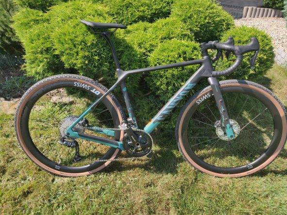 przemeg Napisano 4 Września 2021 Napisano 4 Września 2021 Stevens Super Presige 2019 Ultegra 1x11, kupiony okazyjnie z racje uszkodzonego widelca, zastąpiony widłem Orbei. Na razie się poznajemy, więc rura sterowa do docięcia a mostek z regulacją. 6 Cytuj