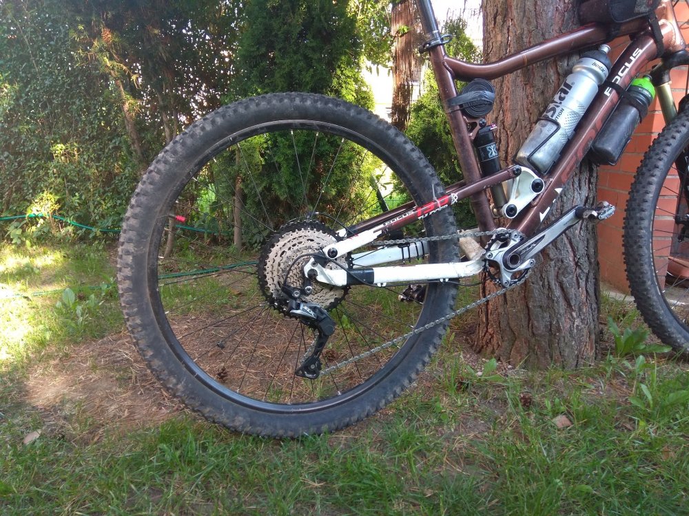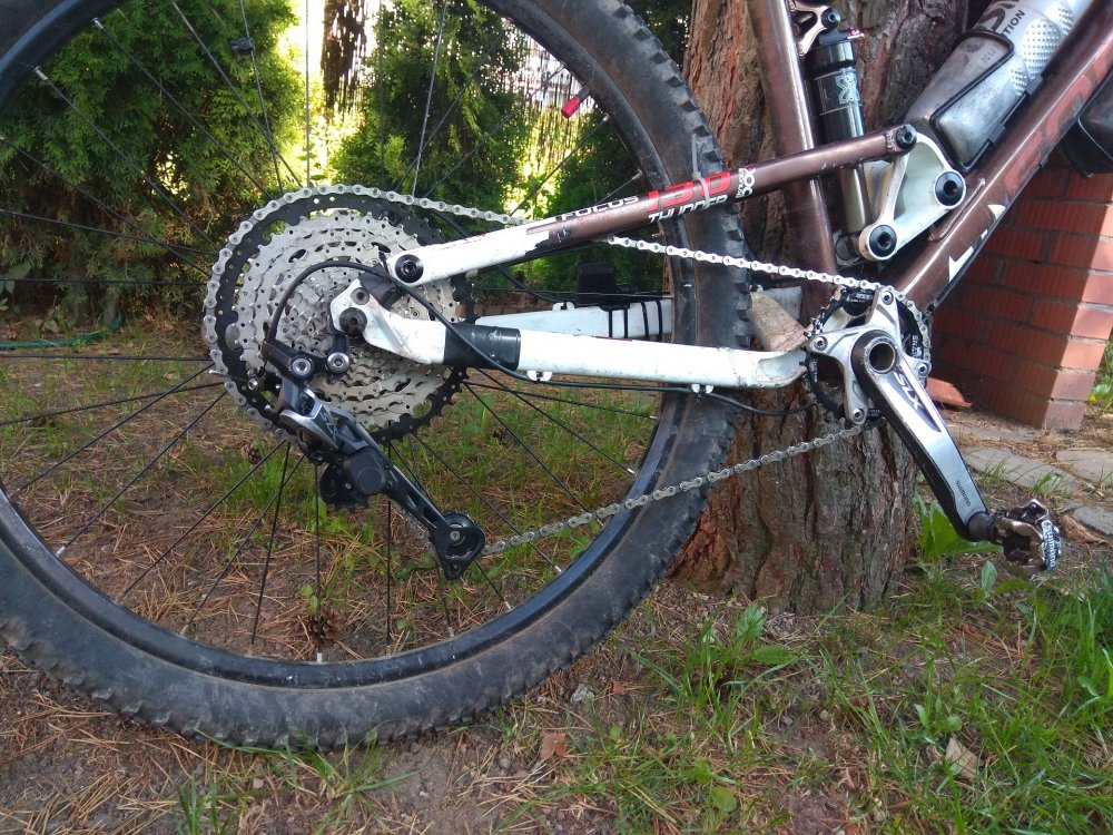 thug10 Napisano 3 Lipca 2018 Napisano 3 Lipca 2018 Cześć Pozwólcie, że dołączę się do tematu i podzielę swoim doświadczeniem w zakresie konwersji do napędu 1X Wariant pierwotny, który zdecydowanie wymagał już wymiany 1. Korba SLX M670 22/36 2. Kaseta 9S 12-36 + łańcuch 9S zakres przełożeń 0,61 - 3 Wariant po zmianach: 1. Jedna tarcza w korbie 30T - SNAIL NAROW z Alli za 35zł 2. Przerzutka SLX M7000 z wózkiem GS - kupiona na Alli za 143zł 3. Łańcuch 10S - kupiony na Alli za 37zł 4. Kaseta 11-50 VS-Sport 10S - kupiona na Alli za 125zł 5. Manetka M7000 10S - kupiona w polskim sklepie za ok 120zł Całość celowo przewidziałem na 10S ponieważ stara dobra piasta M525 ma krótki bębenek , a nie chciałem go wymieniać - osobiście nie widzę wartości dodanej z jazdy na 11s czy 12s przy tym samym zakresie przełożeń ale to moje subiektywne odczucie. uzyskałem zakres przełożeń 0,6 - 2,7 czyli na lekkich bez zmian, a na twardych ograniczyłem zakres o 10%. Jeżdżę raczej w trudnych górach i zębatka 12T raczej nie była u mnie nigdy używana więc w moim odczuciu nic nie straciłem, na zjazdach nie dokręcam ponieważ nie jeżdżę na czas Podsumowanie: - całość pracuje płynnie i precyzyjnie - skos łańcucha mniejszy niż się spodziewałem - sprzęgło w M7000 robi mega robotę - M7000 obsługuje 50T bez żadnej przeróbki - 5min regulacji i działa pięknie - Tarcze narrow polecam kupować nie te płaskie tylko te ze zintegrowanym kominem - pozwala przesunąć linie łańcucha minimalnie do wewnątrz co bardzo poprawia kulturę pracy Zobaczymy jak z żywotnością, na razie mogę napisać coś tylko o przerzutce i manetce bo te przejechały razem 1000km i działają perfekcyjnie, zobaczymy jak reszta. Do końca sezonu pewnie przejadę jeszcze z 1500-2000km to dam znać jak poziom zużycia itp. ........ i po ilu umarł łańcuch Wiem, że nie każdemu taki zestaw będzie odpowiadać ale Ja taki chciałem i jestem zadowolony Mam nadzieje, że komuś to pomoże chociaż w odpowiedzi na pytanie czy m7000 obsłuży 50T teraz czekam na fale hejtu, że Janusz....., że kupuje na Alii..... itp ehhehehe Cytuj