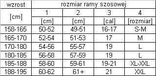 gocu Napisano 11 Sierpnia 2017 Napisano 11 Sierpnia 2017 Masz całkowitą rację, że była za duża, chociaż... do jazdy rekreacyjno-spacerowej zupełnie dobrze by się nadawała Sprawdziłem, czy rzeczywiście coś pomieszałem... i chyba jednak nie. https://www.centrumr...202_TRS_pad.png https://1.bp.blogspo.../tabela ram.gif Oczywiście że pomieszałeś. W tych tabelkach które podałeś nigdzie nie jest napisane że podana wielkość jest długością górnej rury w poziomie (tabelka z drugiego linku to w ogóle komedia, dwie kolumny z rozmiarem - o co tu chodzi? - i dla wzrostu 170-180 rozstrzał od 54 do 57...). Szukając rozmiaru roweru szosowego bezwzględnie należy znaleźć jego geometrię, najlepiej z rysunkiem na którym pokazano która liczba odpowiada jakiej długości!