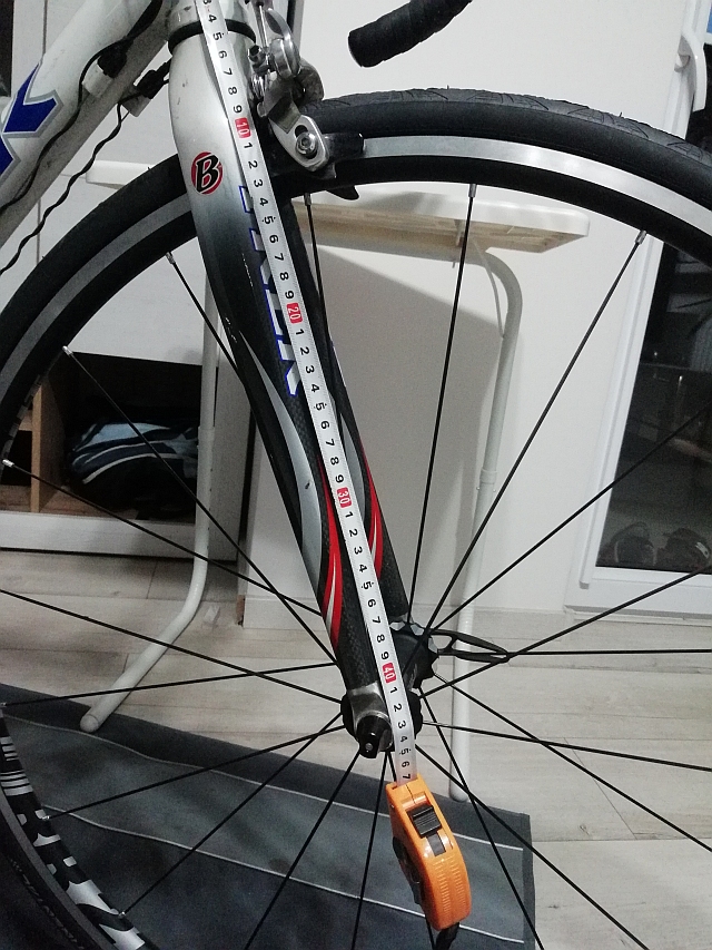 drozda Napisano 25 Lutego 2018 Napisano 25 Lutego 2018 Nie do końca - widelce w których zmieszczą się szersze opony mają z reguły otwór na montaż hamulca nieco wyżej niż takie do wąskich opon. Wtedy też trzeba używać hamulców o dłuższych ramionach do mocowania klocków. W związku z tym odległość od bieżni łożyska w główce ramy do osi koła się wydłuża. W przypadku mojej przeróbki o jakiś centymetr: https://szosa.org/topic/22796-indiana-arrow/
