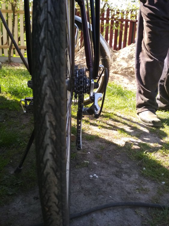 Karol1994czx Napisano 10 Marca 2018 Autor Napisano 10 Marca 2018 Dziękuję bardzo za porady. Uratowaliście mnie przed bezsensownym wydawaniem pieniędzy. Posiedziałem dzisiaj trochę i zrobiłem kilka rzeczy: odkręciłem przerzutkę tylną, wyczyściłem ją w środku przy użyciu wd 40, i popryskałem smarem w sprayu, naciągnąłem i posmarowałem linkę na długości pancerzy, manetkę przednią i tylną również potraktowałem wd-40 i smarem w sprayu. Zrobiłem jazdę testową, i co mnie bardzo zaskoczyło kultura pracy napędu była bardzo zadowalająca ( , jeśli chodzi o pracę łańcuch - kaseta- zmiana biegów. Jedyne co mnie niepokoi to dziwne chrobotanie ( jak na mój słuch wydobywający się z suportu. Początkowo myślałem, że to wina zapieczonych pedałów, które odkręciłem, przeczyściłem i nasmarowałem, lecz to nie tu leżał problem. Poniżej wstawiam zdjęcia mojej kasety, proszę oceńcie czy mam ją wyrzucić i jak najszybciej wymienić, czy nadal na niej jeździć. Z racji, że nie mam przymiaru wyciągnięcia łańcucha, zdjąłem go i na długiej listwie rozłożyłem go i zmierzyłem jego długość na 20 ogniwach przy użyciu metrówki, mierzyłem kilka razy aby zwiększyć dokładność pomiaru i wyszło mi 51,1 cm ( a więc łańcuch wyciągnięty o 3 mm, co się okazuję jeszcze dopuszczalnym wynikiem). SoloTM hamulce hydrauliczne były również z przodu, tylko przestały działać ( chyba wina pękniętego przewodu), . Orientujecie się ile by mniej więcej kosztowało w serwisie ich naprawienie? Opony po bokach lekko popękane są - wymieniać czy jeździć nadal? Cytuj