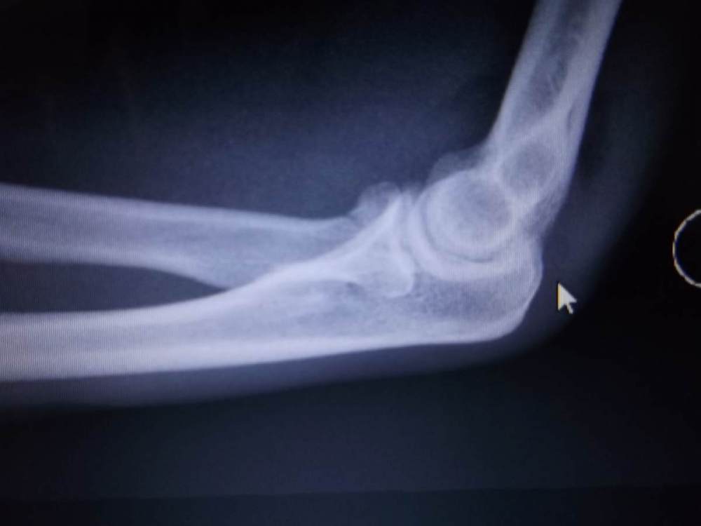 Oczywiście, że zdjęcie kontrolne było. Ten drugi lekarza kazał je zrobić po zdjęciu gipsu. Ręka była już całkiem sztywna i dwa razy chudsza, choć to tylko 9 dni. Wypadek miałem 29.06.2017, w czwartek wieczorem. Wróciłem rowerem do domu, po czym pojechałem samochodem na SOR, gdzie prześwietlili tylko głowę i stwierdzili złamanie nosa. Ręka bolała, ale jeszcze się ruszała. W piątek nie dostałem się do chirurga, z daleka popatrzył i kazał przyjść w poniedziałek. Dopiero wtedy zrobili mi rtg i wyszło to złamanie w łokciu.Ręka bolała w każdej pozycji,  była już mocno spuchnięta i zakresu ruchu już nie miałem żadnego.