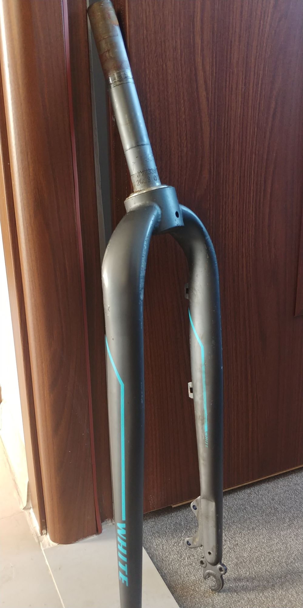 Niestety w wyniku czego został skrzywiony przedni widelec. Co gorsza, ciężko znaleźć odpowiednik ze względu na to iż to fatbike oraz oś jest na 9mm, a nie jak w przypadku innych 15mm lub 20mm.