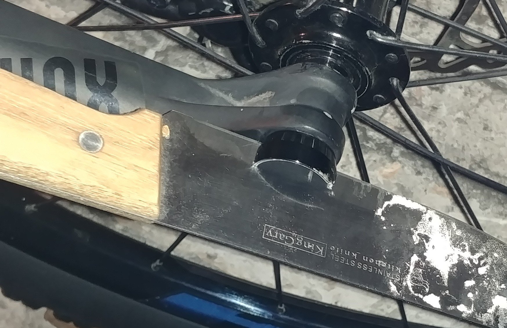 thepanone Napisano 16 Sierpnia 2019 Autor Napisano 16 Sierpnia 2019 Okazało się, że ten czarny okrągły element ma wciecia i wystarczy tam włożyć nóż. Teraz pytanie czy bezpieczna jest jazda bez zgubionego elementu, w sensie czy zadaniem śruby zacisku nie było rozpychanie ośki. Ps jakby to wyglądało gdybym jeździł z tym nożem?