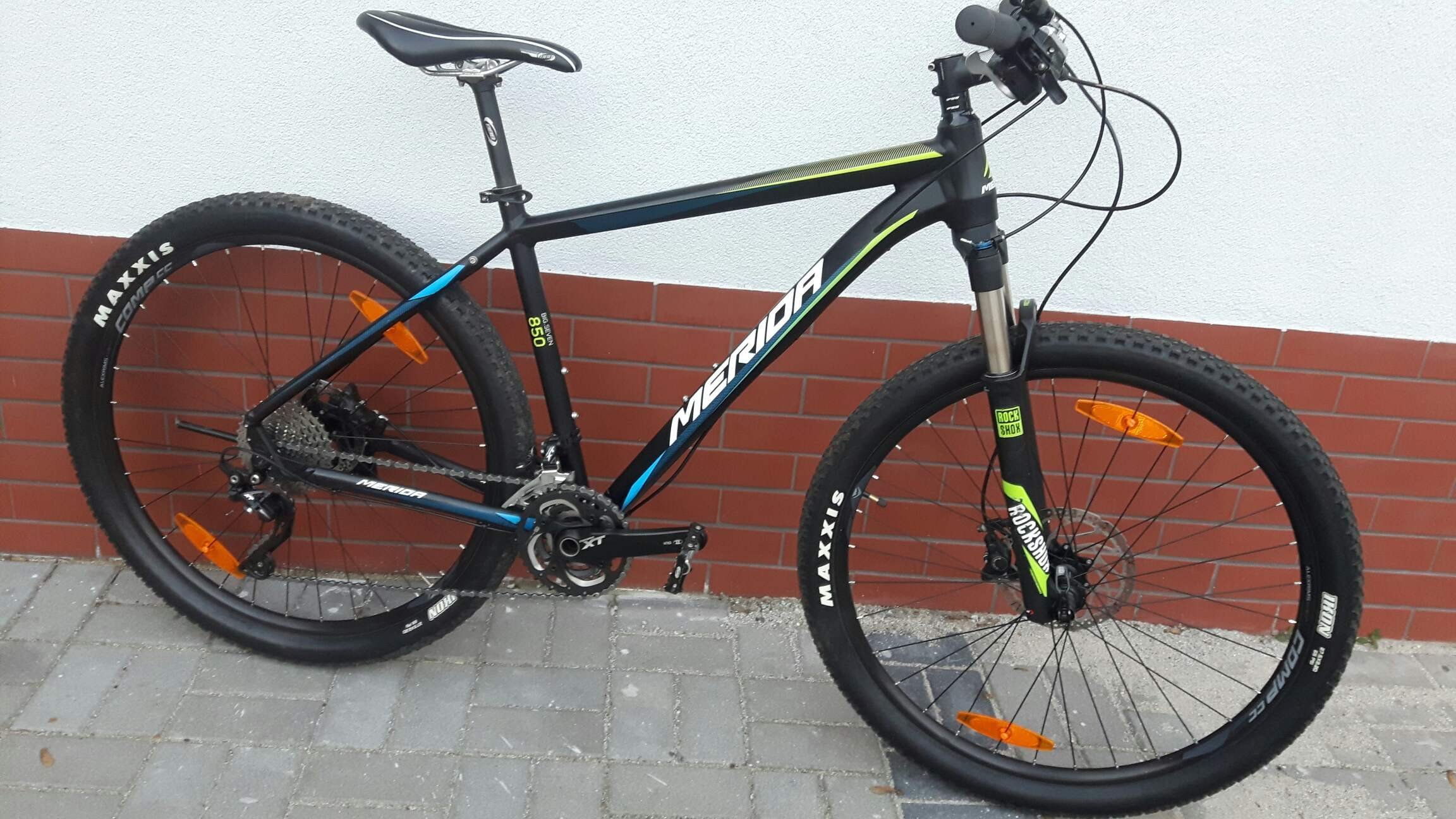 SOAD Napisano 18 Grudnia 2019 Napisano 18 Grudnia 2019 Witam, sprzedam Meride na kole 27,5, rower na pełnej grupie Shimano XT oraz powietrznym amortyzatorem Rock Shox Recon Rower w bardzo dobrym stanie łańcuch na mierniku nie wykazuje żadnego zużycia przed sprzedażą miał zrobiony pełny serwis, nie wymaga najmniejszego wkładu, gotowy do jazdy. Rower mogę osobiście dostarczyć w promieniu ok 100km od Wałbrzycha. W razie pytań proszę dzwonić 606 838 716 dla zainteresowanych mogę wysłać więcej zdjęć na maila. Możliwość kupna roweru na raty 0% Cena 2799 zł Specyfikacja: Rozmiar ramy 18" Rama Merida Aluminiowa Widelec Rock Shox Recon QR 15mm Przerzutka tył Shimano XT Hamulec tył Shimano XT Hamulec przód Shimano XT Dźwignia hamulca Shimano XT Manetki Shimano XT Korby Shimano XT Kaseta Shimano XT Kierownica Merida Aluminiowa Koła Alexrims Comp Opony Maxxis Ikon Wspornik kierownicy Merida Aluminiowy Wspornik siodła BBB Siodło BBB Aukcja allegro: https://allegro.pl/oferta/merida-big-seven-850-rock-shox-recon-os15-full-xt-8787444800