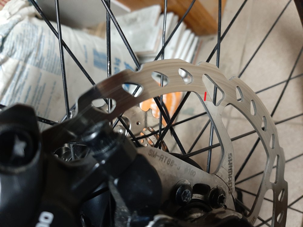 eloo Napisano 27 Września 2020 Napisano 27 Września 2020 Nie napisałem Ci wcześniej że rt800 nie pasują do wysokich klocków tylko że mogą nie pasować. Tu masz przykład na jednym z moich rowerów. Hamulec oczywiście działa bez najmniejszych problemów. Klocki ścierają się nieco nierówno ale zanim zacznie być to odczuwalne to sie je wymieni. Tarcza rt66 i tani hamulec shimano. Zobacz o ile niżej niż powierzchnia cierna sięgają klocki i jeśli coś będzie wystawać poza obrys tarczy to będzie obcierać. Zawsze można podłożyć podkładki pod zacisk hamulca ale skoro nie chciałeś adapterów tarcz to nawet nie pisałem o takim druciarstwie.
