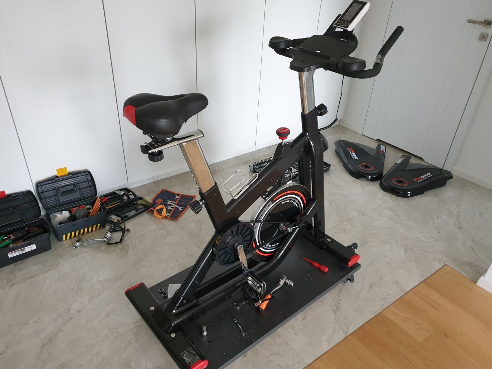 Kein Napisano 18 Października 2020 Napisano 18 Października 2020 Witam Piszę tego posta ponieważ sam szukałem informacji na temat rowerków spinningowy i niestety ich nie znalazłem. By może będzie on pomocny dla innych. Słowem wstępu z założenia nie chciałem trenażera ponieważ według mnie zajmuje on więcej miejsca i paradoksalnie w moim przypadku jest mniej mobilny. Przez kilka miesięcy jeździłem na rowerku elektromagnetycznym z systemem oporu 14,5 kg ( nie sądzę aby koło zamachowe tyle ważyło ponieważ cały rower to było 38 kg). Założenie które dlamnie były istotne to 1. Mobilność, sprzęt musiał być krótki, obecnie stoi na platformie która ma 105 cm, wyposażanej w 4 kółka z blokadą, więc mogę przejeżdżać swobodnie po mieszkaniu pomiędzy pomieszczeniami. Platforma to blat zamówiony u stolarza koszt 50 zł, 4x kółka koszt 60 zł, polecam podwójne kółka ogumowane nie uszkodzą parkietu/deski. 2. Cisza, jednak przyzwyczaiłem się do niej przy rowerku elektromagnetycznym i stąd padło na rower na pasku i z hamulcem magnetycznym. Chodziłem na zajęcia z spinningu w klubie i jednak są one głośne a w mieszkaniach nie mamy sufitu na wysokości 3,5- 4 metrów. Moje założenia do treningu to max 1x rbh dziennie, z reguły jest to 30-40 minut podczas wieczornych wiadomości lub filmu, plus żona od czasu do czasu. Rower który kupiłem jest marki HERC model XR-660. Kupiony zdalnie, bez przymierzenia się do niego. I tutaj ważna dygresja na dzień 14 X 2020 , nałożył się dwa czynnik jesień i większe zainteresowanie, oraz kolejne zamknięcie siłowni i nasilenie epidemii. Więc sprzęty zostały wymiecione z rynku i tak de facto nie było wyboru w sprzęcie poniżej 2 tys. i w założeniach które sobie postawiłem pasek zamiast łańcucha i magnetyczny hamulec. Część sklepów prowadzi już rezerwacje na grudzień ( tak dwa miesiące). Sprzęt jest dla osób o wzroście do 180 cm, wyższe osoby będą miały problem z ustawieniem pozycji. Nie ma regulacji kierownicy na odległość. Wykonanie jest poprawne. Jest bardzo chichy nawet doszliśmy do wniosku iż jest cichszy niż poprzedni elektromagnetyczny. Duże znaczeni ma tu też obudowa mechanizmu jest wykonana z grubego i twardego tworzywa ( taki klasyczny plastik z lat 90’siątych ale w tym przypadku jest to duży plus). Oczywiście pedała i siodełka do indywidualnego dopasowania. Generowany opór- koło zamachowe ma 15 kg i nie wypowiem się czy większe koło było by dużo lepsze. Opór może być za mały dla mocnych zawodników, ma tu na myśli jazda na stojąco, jednak filc można docisnąć do zera ( w profesjonalnych roweruch na siłowni), ale można temu łatwo zaradzić, wspomnę o tym na końcu. Po zakupie takiego sprzętu zalecam jego rozebranie ( wymagany ściągacz do korb) i wyregulowanie. Jednak jest to „chińczyk” i wymaga ustawienia koła i lekkiej regulacji. Jak wspomniałem rower jest na pasku, jednakże nie ma w nim możliwości regulacji obręczy/rolek na których to pasek jest prowadzony. Chodzi mi o to że pasek nie jest dokładnie w równej linii pomiędzy kołami. jest on letko przesunięty. Może inaczej linia pionu rolki mechanizmu korbowego nie odpowiada idealnie pionowi rolki koła zamachowego. Przesunięcie to około 2 cm, tym samym pasek jest letko krzywy. Niestety nie zrobiłem zdjęcia a nie chce mi się drugi raz go rozkręcać i korby ściągać. Nie jest to rzecz która go dyskwalifikuje ale np. w samochodzie przy alternatorze czy jakiś silnikach przemysłowych przy takim przesunięciu pasek by zaraz szklak trafił, ale tam też inne siły i obroty działają. Zakładam iż kwestia ta nie występuje w sprzętach za 3,5 -5 tys. i być może jest możliwość regulacji odległości rolek. Prewencyjnie nieznacznie nawilżyłem oliwką sam bok paska, trochę to zniweluje tarcie przy tym bocznym przesunięciu. Pamiętajcie- paska nie smarujemy. Komputer jest tylko dodatkiem, pokazuje obroty ( to akurat jest przydatne), dystans nie wiem jak wylicza, może na podstawie obrotów, kalorie i puls to wiemy wszyscy iż jest to fikcja w tej klasie sprzętu. Rozbierając ten rowerek naszła mnie myśl iż łatwo można przerobić klasyczny rowerek z hamulcem filcowy na magnetyczny. Proszę zobaczyć na zdjęcie hamulca. Dobre magnesy neodymowe 4x sztuki to koszt 50 zł, w zakładzie ślusarskim lub samochodowym sądzę że ktoś dorobi wam szynę/blaszkę gdzie będzie można je przymocować za 100-200 zł. Sugeruję ją zrobić odpowiednio dłuższą aby można było dokładać magnesy jak zajdzie potrzeba zwiększenia oporu. Są magnesy od razu z gwintem więc od razu szynę można pod nie dostosować. Problemem pozostaje łańcuch bo jego zmiana na pasek jest już dużym kosztem, i tym samym przeróbka może być już nie ekonomiczna. Wspominam o tym ponieważ klasyczny rowerek z kołem 20 kg Zipro Holo jest za 950 zł planowana dostawa za 2 tygodnie ( na 17 X 2020). Wymienić w nim łańcuch na cichszy plus przeróbka hamulca i trochę to podniesie komfort treningu. Tak jak wspomniałem powyżej, można w łatwy sposób zwiększyć opór wymieniając magnesy na nowe lub dokładając kolejny, jest na niego miejsce kostka 25x25mm. Wymieniając wszystkie na nowe sądzę iż opór były już więcej niż wystarczający. Nie są one drogie a ich moc można łatwo dobierać. Reasumując rowerek dla amatorów, wystarczający do treningów w okolicach jednej godziny. Porównując go do rowerów profesjonalnych spinningowych ( w klubach fitness) jednak łożyskowanie jest gorsze, na nich czuć że to koło osiąga duże prędkości i wyhamować nogami jest bardzo trudno. Tu mogę wyhamować nie używając hamulca. Dlamnie paradoksalnie jest to plus, trudno mi było posadzić żonę na sprzęcie gdzie mogła by sobie zrobić krzywdę. Zapewne mają wpływ na to magnesy które mimo iż są oddalone to cały czas spowalniają nieznanie obręcz, przy filc