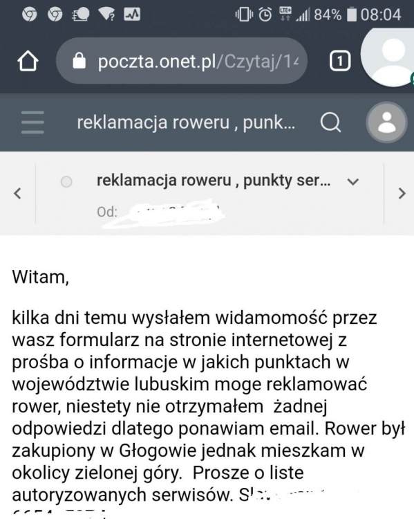 dzony86 Napisano 31 Stycznia 2021 Napisano 31 Stycznia 2021 Witam chciałbym opisać sytuacje w temacie reklamacji jednego z topowych rowerów marki Kellys, full carbon. W grudniu podczas normalnej jazdy leśnymi trasami urwała się przerzutka (sram NX 12) i pękła tuz przy mocowaniu z hakiem. Sam hak przerzytki nie został uszkodzony. W wyniku zerwania przerzutka uderzyła w pozostałe elementy takie jak rama, możliwe ze kaseta , są widoczne ślady na ramie (karbon) po uderzeniu przerzutki. Sama przerzutka poza standardowymi obtarciami i zarysowaniami nie posiada znaczącego śladu sugerującego uderzenię itp. Rower tez bez śladów kolizji, wypadku, wywrotki – stan stwierdzony w sklepie. Trasa to zwykła ścieżka , nie wiem czy się wkręcił jakiś patyk bo nic nie było w pobliżu dlatego postanowiłem zareklamować rower. Próbowałem skontaktować się dwukrotnie z firma kellys, jak należy postępować czy są jakie punkty w lubuskim gdzie mogę oddać rower. Niestety bez żadnej odpowiedzi. Brak info na stronie o punkatch serwisowych itp. Wiec musiałem jechać oddać rower do miejsca oryginalnego zakupu czyli prawie 90 km , głogów. Na miejscu przedstawiłem jak wyglądała sytuacja z prośba o informacje czy zgłaszać na gwarancja czy rękojmia czy na przerzutkę czy inny powód np. design czyli zbyt mocny hak zastosowany w rowerze. Pytałem o to bo kiedyś zerwałem hak w innym rowerze i na forum było to opisane ze takie jest zadanie haka żeby przejąć sile aby nie uszkodzić ramy czy przerzutki. Teraz słyszę od sprzedawcy ze to nie do końca prawda w takich rowerach. Po rozmowie ze sprzedawca on zasugerował gwarancje i uszkodzona przerzutkę z żądaniem o wymianę na nowa. Na wstępnie poprosiłem żeby wyjaśnić takie tematy jaki punkt gwarancji opisujący podstawę do ewentualnego odrzucenia (sprzedawca od razu zasugerował ze są marne szanse na pozytywne rozpatrzenie sprawy i ze gdyby to było do max. pół roku to by poszli na rękę a teraz to za późno ) takżę prosiłem e aby uzasadnić przyczynę w przypadku odrzucenia i komentarz do haka , także aby zrobić dokładna dokumentacje przerzutki haka i ramy . Niestety zdjęcia były skupione głownie na przerzutce i pęknięciu oraz kilku zadrapań i obić (ruchomy wózek i korpus) które wynikały z normalnego użytkowania lub tez taka opcja, uderzenia o rame po zerwaniu. Po kilu dniach przyszłą odpowiedz ze uszkodzenie mechaniczne i reklamacja odrzucona. W piśmie od kellys same ogólniki ,bez żadnego komentarza na podstawie jakie punktu gwarancji bez wskazania punktu mechanicznego uderzenia który oni sugerują. Napisałem bezpośrednio do kellys bo sprzedawca udostępnił kontakt z prośbą o doprecyzowanie, obiecana była analiza w sram jednak na obietnicach tylko się skończyło. W odpowiedzi od kellys dostałem info ze nie jestem stroną w tej reklamacji i nie udziela mi odpowiedzi i żebym kontaktował się tylko ze sklepem a nie nimi. Ogólnie żadnej pomocy ani odpowiedzi na wszystkie pytania które zadałem kellys. Teraz wiem ze lepiej postawić na bardziej renomowaną firmę albo rodzimą bo tu standardów nie ma. Co myślicie o tej sytuacji? Takie pęknięcia nie podlegają reklamacji?