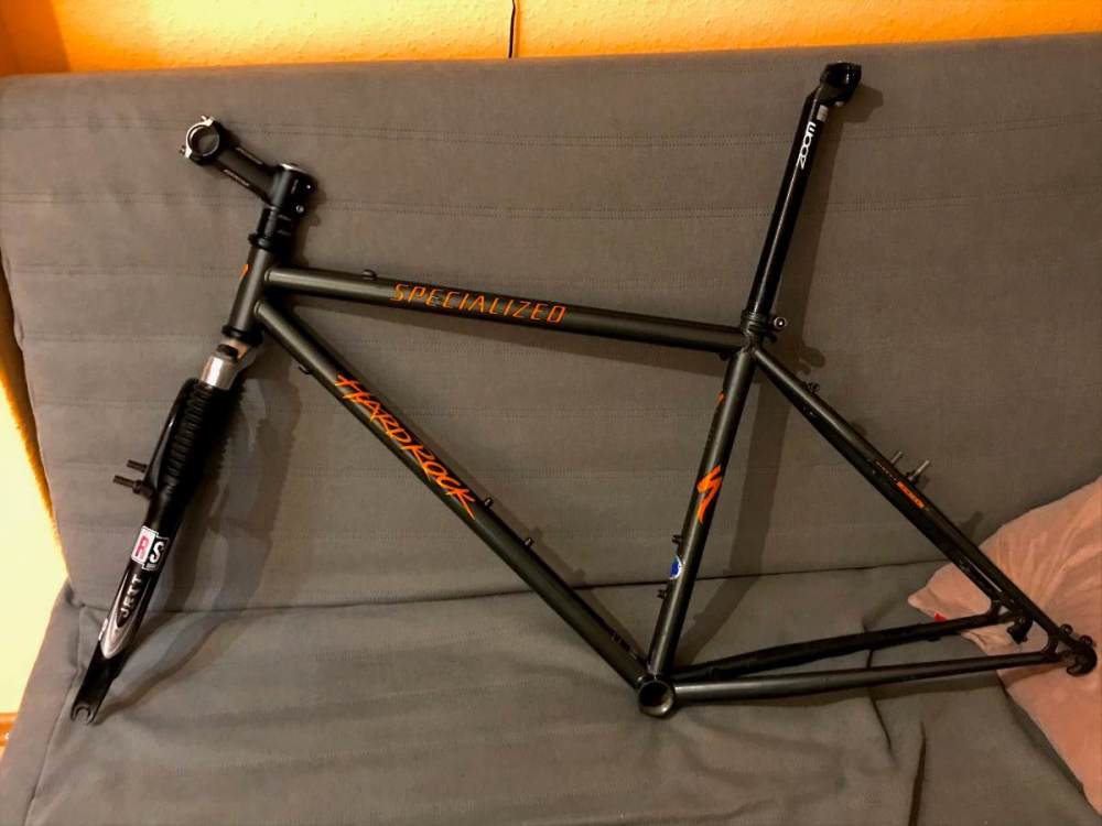 Opat Napisano 12 Maja 2021 Autor Napisano 12 Maja 2021 Czołem, stwierdziłem, że jeżeli ten rower był z amorkiem z przodu, to tak też go zbuduję. Wrzuciłem do niego Rock Shox JETT C, przeszedłem na system ahead, po zrobieniu sobie narządzi do wybijania i wprasowywania misek dodatkowo kupiłem sztycę. Cały czas zastanawiam się, czy osprzęt pakować z 90's typu deore LX lub STX, czy współczesny np. 1x10. Cytuj