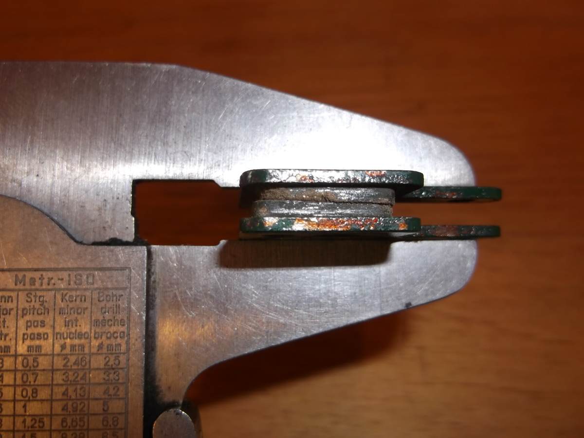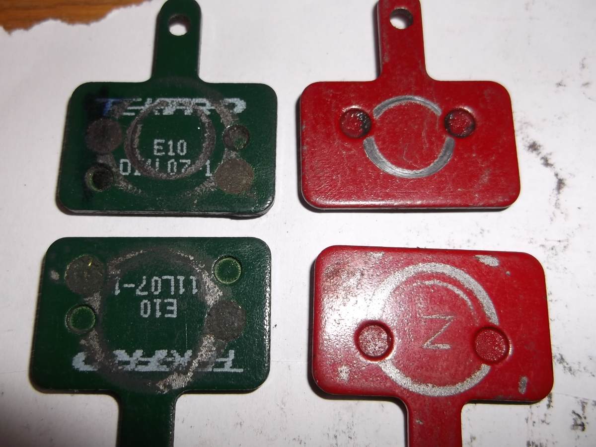 marvelo Napisano 17 Maja Napisano 17 Maja (edytowane) A tyle zostało z półmetalicznych klocków Jet po dzisiejszych testach (znów 3 zjazdy i hamowanie z 65 km/h do zera): Po przeszlifowaniu: Nawet się bardzo nie pokruszyły, po prostu się starły (w sumie najbardziej zużyte ze wszystkich, zostało jedynie 5,8 mm łącznie). Fading pod koniec hamowania był znaczny, wręcz myślałem że już się nie zatrzymam przed poprzeczną drogą (ten zjazd wąwozem wypada na drogę Niemienice - Krasnystaw, a zaczynam hamować z tych 65 - 67 km/h jakieś 40-50 m przed). Na wszystkich klockach widać, że ruchomy zużywa się bardziej na dole, a stały na górze. Moim zdaniem sam fakt, że tarcza jest wąska ma tu niewielkie znaczenie. Tak będą się zużywały wszystkie klocki w konstrukcjach z jednym ruchomym klockiem, zwłaszcza gdy tarcza nie jest idealnie prosta i musimy zostawić pewien odstęp od nieruchomego klocka. Tarcza podczas hamowania pracuje w wygięciu i tak musi być. Aktualnie założyłem te tańsze Clarks'y (żywiczne, te spiekana zostawię na później). Parę kilometrów już przejechałem docierając i nie jest źle (najlepiej ze wszystkich jak na razie), ale i tak roweru nie postawię na przednie koło. Mam już pancerz Jagwire Keb i da się zauważyć poprawę, ale cudów nie robi. Z przodu jest dość krótki, niecałe 70 cm. Zobaczymy jak zachowają się te klocki na tym zjeździe w Niemienicach. Pewnie za parę dni znów taki test powtórzę. Edytowane 17 Maja przez marvelo Cytuj