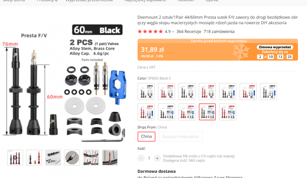 Mandoleran Napisano 13 Stycznia 2022 Napisano 13 Stycznia 2022 Nie wiem co to są za kosmiczne wentyle, ale za swoje zapłaciłem tyle: Dziś pierwszy raz w życiu robiłem tubeless, nie mając kompresora tylko zwykłą pompkę podłogową, a za instruktaż posłużył mi You Tube i bez problemu się uszczelniło, mleko się nie rozlało. Pewnie to tez zasługa trochę lepszych kół na bez haczykowych rantach ( hookless ) ale poszło z wentylkami za 30 parę zł. Zestawik jak widać dość bogaty, trzyma nic nie cieknie - po prostu działa