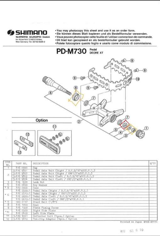 DuszaK Napisano 20 Marca 2022 Napisano 20 Marca 2022 Witam wszystkich. Jako iż pierwszy raz zamieszczam temat na forum z góry przepraszam jeżeli robię to w złym miejscu bądź popełniam przy tym inne błędy. Piszę tutaj ponieważ potrzebuje pomocy w znalezieniu części do starych platform Shimano Deore XT PD-M730. Na zdjęciu zaznaczyłem w czerwonej ramce nakretke która jest mi niezbędna i którą próbuje zdobyć już od dłuższego czasu aby zreanimować wyżej wymienione platformy. Może ktoś posiada tak nakrętke albo wiedzę na temat tego czy taka sama występowała też w innych pedałach shimano. Nawet jeśli ktoś mógłby mnie poratować choćby informacja gdzie takiej szukać to już by mi to ułatwiło całą sprawę za co będę bardzo wdzięczny. Na zdjęciu zaznaczyłem równie kilka innych części tych platform (pomarańczowa ramka) które również by się przydały jakby ktoś już coś takiego posiadał i chciałby odstąpić za jakąś kwotę bądź się na coś wymienić