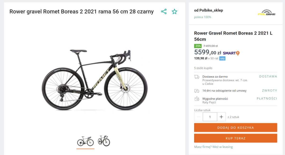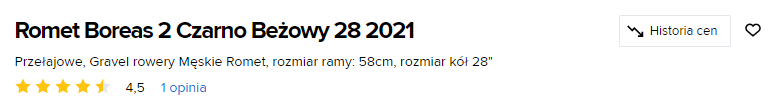 Ceneo.pl Napisano 2 Czerwca 2022 Napisano 2 Czerwca 2022 Witajcie, Dzisiaj wracamy do Was z rowerami dostępnymi w atrakcyjnych cenach! Poniżej znajdziecie przegląd rowerów, które obecnie mają najniższą cenę na Ceneo.pl w ciągu ostatnich 6 miesięcy. Do przeglądu wykorzystamy narzędzie Historia cen dostępne na Ceneo po zalogowaniu do swojego konta. Modele w promocji: Gravel Romet Boreas 2 Czarno Beżowy 28 Rocznik 2021 Rower MTB Orbea Onna 29 10 Rock Shox Rocznik 2022 Kross Vento 4.0 28 Czerwony Bordowy Połysk Rocznik 2021 Romet Mustang M6 bordowo-biały Rozmiar koła: 29" Rozmiar ramy: 17" Rocznik: 2022 Author Pegas Grafitowy Mat Rozmiar kół 29" Rozmiar ramy: 17" Rocznik 2022 Czy takie informacje będą dla Was interesujące? 1