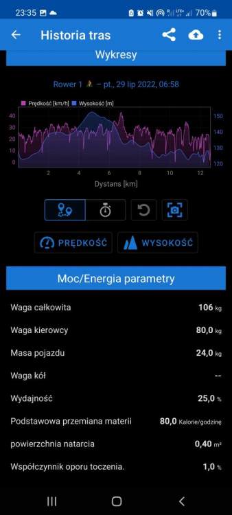 biela Napisano 5 Sierpnia 2022 Autor Napisano 5 Sierpnia 2022 6 godzin temu, modrzew napisał: Czekaj czekaj, to najpierw 11km robisz w prawie 40 minut, a potem nagle zapitalasz 40km/h? To tym bardziej do czego tu elektryk, skoro ma odcięcie powyżej 25km/h. Ale wiesz, że i w mtb i w crossie możesz wymienić opony na mniej lub bardziej agresywne? Obejrzyj sobie kiedyś zawody przełajowe jak się śmiga po błocie i piachu na gumach 33c - to się nazywa po zagranicznemu "skill" i tego nie da kupno tego czy innego typu roweru. Skille są różne. Co się wyprawiało na Wigry 3 to głowa mała... Kilka danych z ostatniej jazdy