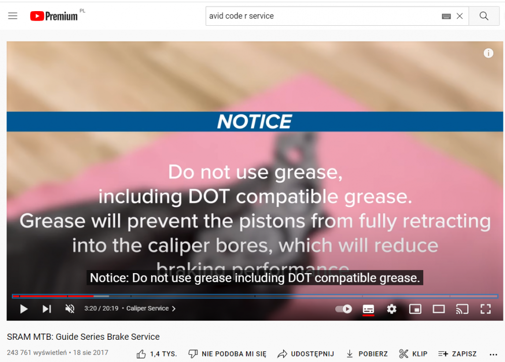 mudia Napisano 2 Października 2022 Autor Napisano 2 Października 2022 (edytowane) 8 godzin temu, Electronite napisał: Tego się nie oliwi, bo płyn DOT rozpuszcza smary i nie ma to najmniejszego sensu. Jak udało ci się wyjąć tłoczek i wsadzić go z powrotem, to gumy nie są spuchnięte. Tak samo, tłoczek nie cofa się wcale przesuwając się względem gumy. On się na niej wychyla. I potem ta uszczelka odprężając się, wciąga tłoczek do środka. Czy tarcze się blokują? Bo to tak może być i wręcz powinno, że cofa tłoczki ułamek milimetra. Tylko tyle, żeby rozblokować tarczę. Wcale nie powinny wjechać kompletnie do środka. Są specjalne smary do DOT, nawet sam Avid ma "swój" produkt. Tego właśnie użyłem. https://allegro.pl/oferta/avid-dot-29ml-smar-do-uszczelek-hamulcow-hydraul-12627139034?utm_feed=aa34192d-eee2-4419-9a9a-de66b9dfae24&utm_content=lvsku&utm_content=supercena&utm_content=ps&utm_source=google&utm_medium=cpc&utm_campaign=_uzsd_sport_pla_pmax_ps&ev_campaign_id=17958852663&gclid=Cj0KCQjwyt-ZBhCNARIsAKH11746cNDXEXGvu-JlQ4smAcRFlrGzmd6y3l9Wl9k-LGCgJjWdFgl_MSIaAvE7EALw_wcB Szczelina jest stanowczo za mała. I z każdym naciśnięciem hamulca tłoczki wracają coraz mniej aż co ciągłego ocierania o tarczę. Skok klamki jest naprawdę mikroskopijny. Piszę to porównując do tego jak hample działały jako nowe oraz do wielu innych modeli jakie miałem. "Tak samo, tłoczek nie cofa się wcale przesuwając się względem gumy." - to chyba może być to. Oto klatka z filmu serwisowego Avid'a. Taki ze mnie spec, że nie pomyślałem o przejrzeniu wpierw oficjalnego tutorialu 😕 Edytowane 2 Października 2022 przez mudia Cytuj