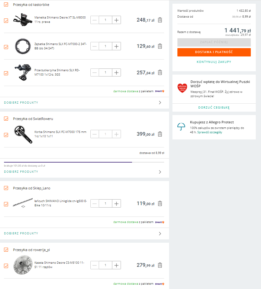 Alsew Napisano 17 Grudnia 2022 Napisano 17 Grudnia 2022 W dniu 16.12.2022 o 08:48, cojot napisał: Myślałem np.nad tym "zestawem" na jakiś czas starczy chyba... https://www.olx.pl/d/oferta/naped-shimano-2x11-xtr-xt-CID767-IDR9P7H.html?reason=seller_profile O "chyba" to idealne słowo na tą okoliczność. Wystarczy że przerzutka ma lekko przetrącony wózek i nie będzie to działać wcale. Do tego nikt nie pcha kółek Tacx do przerzutki XTR dlatego że jest nowa.