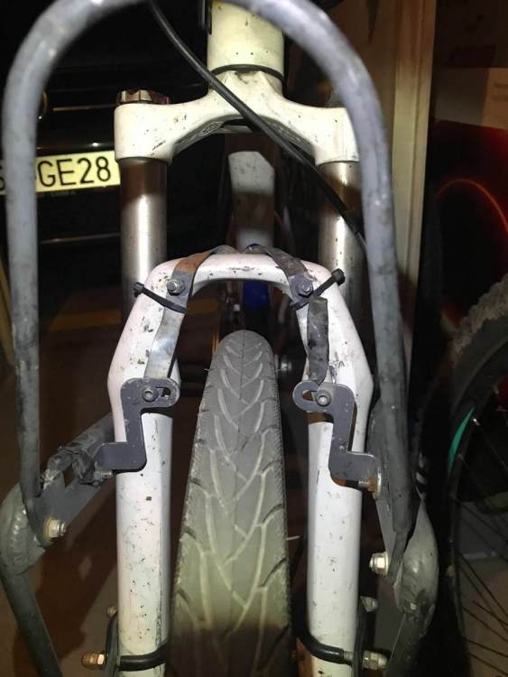 loswiaheros Napisano 29 Marca 2023 Napisano 29 Marca 2023 Cześć, Odniosę się tylko do fragmentu Twoich rozterek... Cytat - bagażnik przedni Crosso: https://crosso.pl/produkt/bagaznik-rowerowy-przedni-low-rider/ - ale tutaj nie do końca jest wytłumaczone czy można to założyć na widelec bez uchwytów na V-barke ( ja ich nie mam ) czy czy zaczepy Ortlieba się na nim zamykają do końca.\ Mam ten bagażnik zamontowany na widelcu z amortyzatorem i bez piwotów do montażu V-brake'ów. Bagażnik nie będzie wystarczająco stabilnie siedział, jeśli zastosujesz tylko obejmy przykręcane do ammo. Musi być punkt zaczepienia od góry, która trzyma tę konstrukcję. Ja to zrobiłem sposobem domowym jak na poniższych zdjęciach. Trzyma się to już ponad 10 lat. W tym roku chyba wymienię te metalowe blaszki, bo mi zaczęły rdzewieć w zeszłym roku i wizualnie mi się to nie podoba, ale spełnia swoją funkcję idealnie. Jeździłem z tym po naprawdę trudnym terenie ze sporym obciążeniem i nigdy nic się nie urwało. Tutaj możesz zobaczyć, jakie drogi to były: https://www.loswiaheros.pl/afganistan/720-rowerem-w-korytarz-wahanski Cytuj