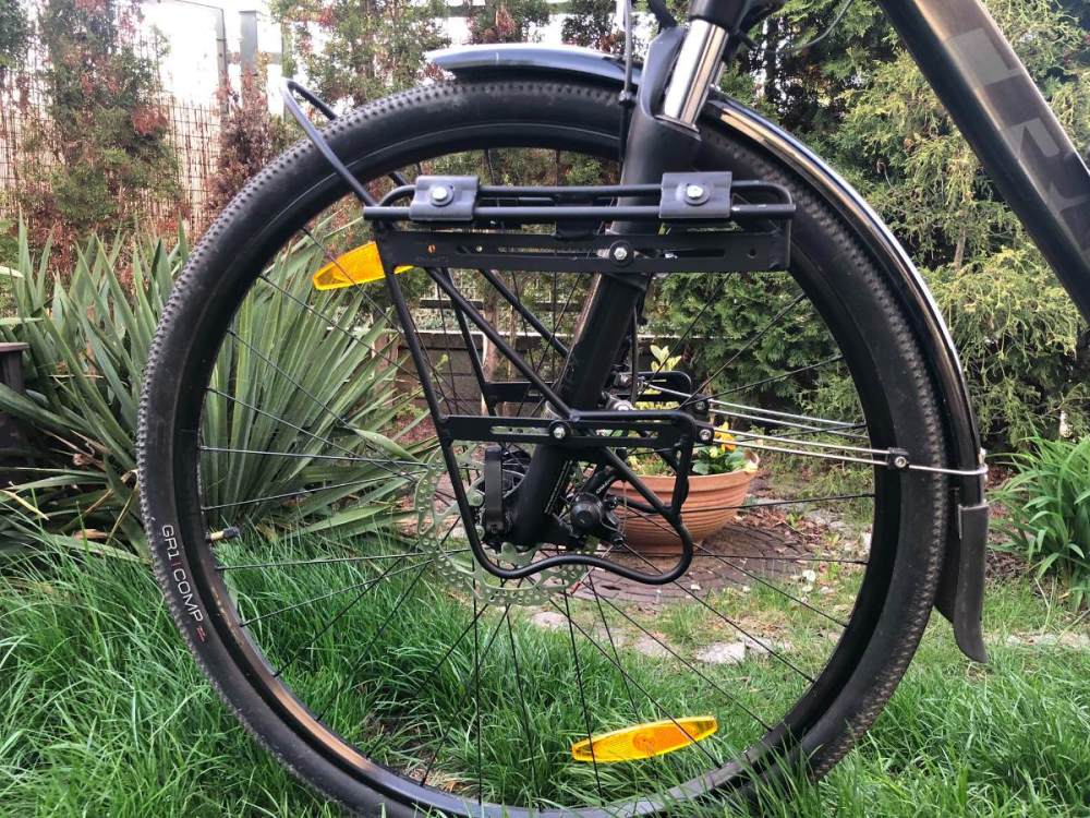 mocart Napisano 28 Marca 2023 Napisano 28 Marca 2023 (edytowane) Cześć. Na początku może napiszę, że zapoznałem się z dyskusją z 2016, z wątku https://www.forumrowerowe.org/topic/204188-sakwy-czy-sakwy-ortlieb-back-roller-będą-pasować-na-bagażnik-przedni/#comment-1853847 Mamy obecnie rok 2023 wiec minęło kilka lat a tam nie znalazłem do końca odpowiedzi na moje pytanie. Szukam bagażnika na przód, do torb Ortlieb Sport Roller Plus (mocowanie QR2.1) najchętniej typu low-rider czy jak to tam zwał na amortyzator przedni. Ostatnio zainwestowałem trochę w napęd wiec nie chciałbym zmieniać amortyzatora na sztywny, chciałbym dokupić coś na to co mam w rowerze. Stockowo mam SUNTOUR`a w podstawowej wersji, który nie ma w sobie żadnych dodatkowych otworów montażowych ( dodaje też fotkę do posta). Ortelieb poleca bagażniki Tubusa ale nie ma ich jak zainstalować na suntourach. Po przeglądzie rozwiązań na rynku wychodzi że na 100% pasował by TOPEAK TetraRack M1 ale jakoś wydaje mi się topornym, drogim i złożonym rozwiązaniem, wiec wolałbym coś innego. To co wyczytałem w sieci to: - bagażnik przedni Crosso: https://crosso.pl/produkt/bagaznik-rowerowy-przedni-low-rider/ - ale tutaj nie do końca jest wytłumaczone czy można to założyć na widelec bez uchwytów na V-barke ( ja ich nie mam ) czy czy zaczepy Ortlieba się na nim zamykają do końca.\ - Zefal https://www.zefal.com/en/racks/133-raider-front.html - to jest obecnie mój leader ale nie widziałem nigdzi ezadnej fotki czy to w ogóle zadziała. - Sport Arsenal https://www.szumgum.com/bagaznik-aluminiowy-przedni-do-widelca-amortyzowanego-expedice-sport-arsenal.html?gclid=CjwKCAjwoIqhBhAGEiwArXT7K-YTlV7ZT--ScsVmNo-d0lqL2cKc1CeGoXEp_467_0u_-OAZY6JlRxoCPI0QAvD_BwE - czy tu zadziałają zaczepy ortelieba ???? - A może coś takiego jak Massload https://www.rowerystylowe.pl/p-136/przedni-bagaznik-rowerowy-na-sakwy-low-rider/w-95/kolor-czarny - chyba jakiś brand Basila wiec jakoś zapewne ok, ale z tego co widzę górę można zaczepić ale co z dołem. Wiec jak ktoś może wrzucić info i fotę jak coś takiego ma rozwiązane to byłbym wdzięczny za pomoc. Tak dodatkowo wrzucam fotę jak to u mnie wygląda na przednim kole. Edytowane 28 Marca 2023 przez mocart dodałem obrazek Cytuj