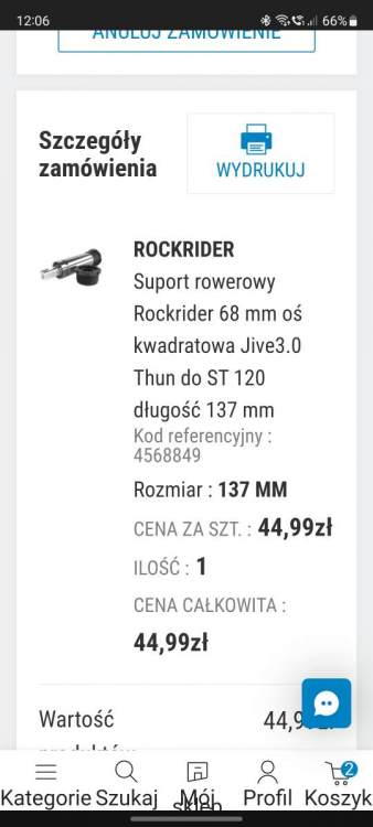 XC100S Napisano 7 Kwietnia 2023 Autor Napisano 7 Kwietnia 2023 Dokończę temat. Debile z serwisu Decathlon poinformowali mnie, a pytałem ze dwa razy, że oś suportu ma 137 mm w tym rowerze. Z Allegro przyszedł 133 mm i zabrałem się do pracy. Wykręcam i już myślałem że ściągacz do korby za 26 PLN poległ ale kręcę dalej i, i zaczęła jednak korba schodzić. To gwint na ściągaczu jest taki drobny i ... Wykręcam suport i ... moim oczom ukazuje się napis 127,5 Ten 137 mm zrezygnowałem i w ten sam dzień Decathlon zwrócił kasę ale tylko za przedmiot a za przesyłkę zostawili sobie a przecież jeszcze nie wysłali. Złodzieje ? Przecież to z winy debila w ich serwisie. Suport z roweru okazał się prawie cały sprawny bo łożysko od strony napędowej robi dobre wrażenie a z drugiej strony hałasowało. Akurat łatwo je otworzyłem i ... zrobiłem. Całość zmontowałem i na rower. Zamówiłem 127,5 i gdyby coś to szybko już to zamienię. Mieli mi jeszcze przy wymianie widelca zmienic stery z skręcanych na pół zintegrowane ale też sam to zrobiłem bo ...
