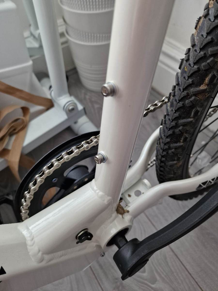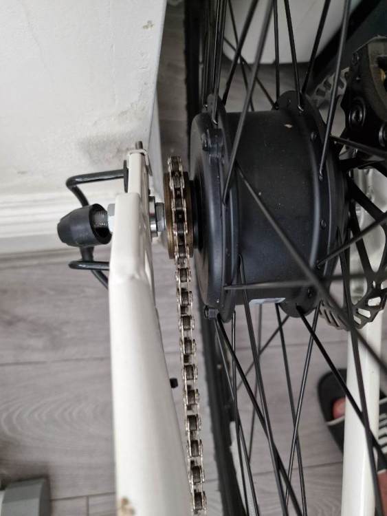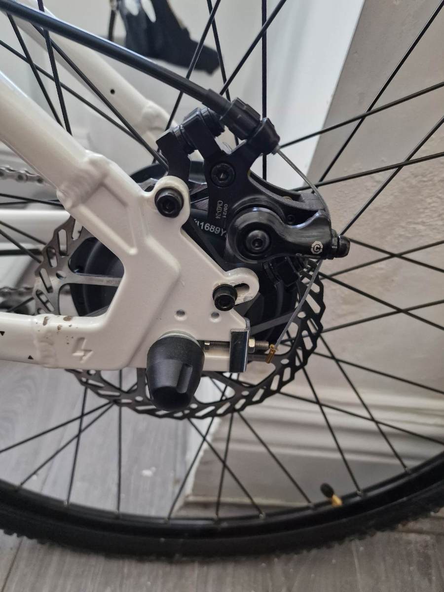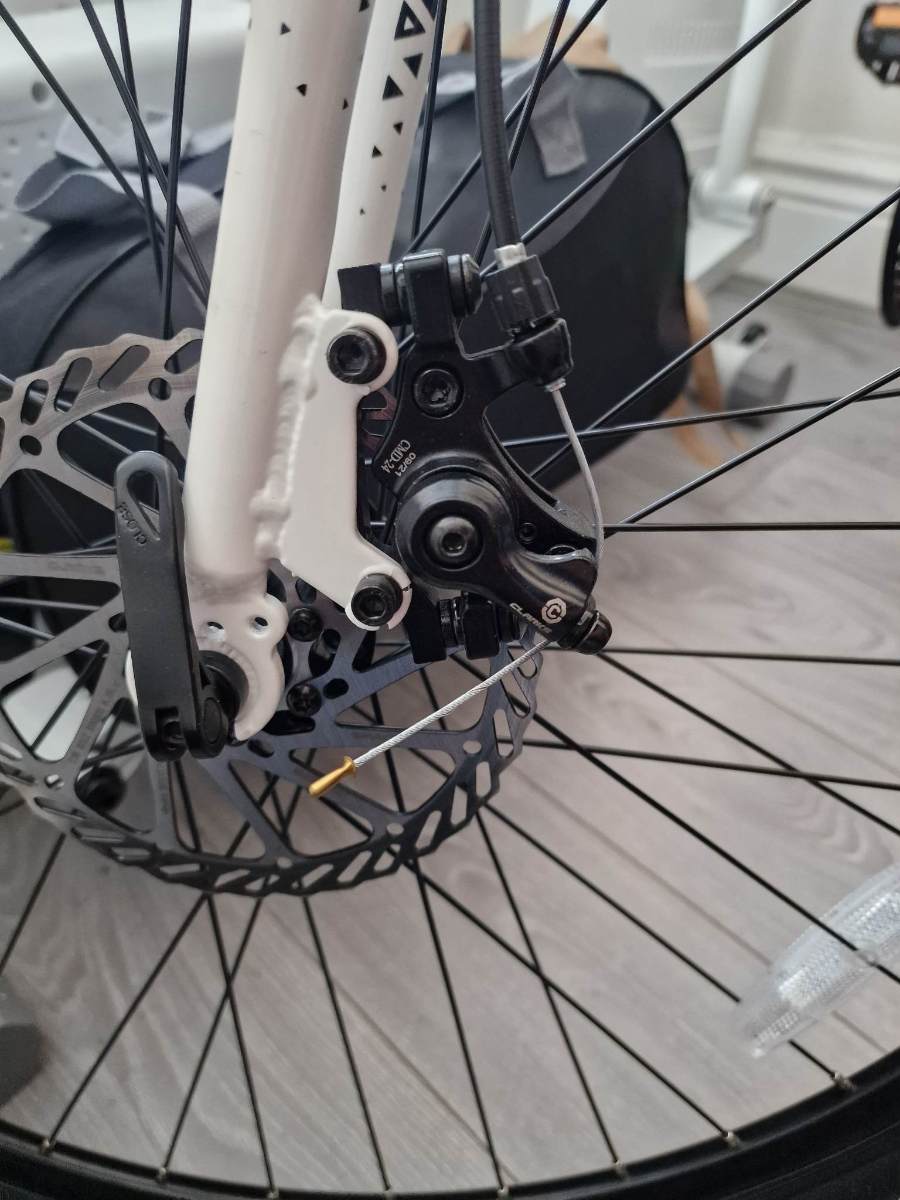 bh9140 Napisano 15 Maja 2023 Napisano 15 Maja 2023 Hej! Dostałem niedawno od mojej małżonki e-bika. Nic z górnej półki. 250W mocy, podstawowe oprzyrządowanie. Dawno już nie jeździłem i wypadłem z obiegu. W starym rowerze miałem AVID Juicy 3 i jeździłem po płaskim. Nigdy nie zawiodły. Teraz chciałbym mieć coś porządnego, z racji że mieszkam w dość pagórkowatym rejonie i mam dość sporo stromych zjazdów. Ważę 120 kilo i mechaniczne tarczówki (jakiś Clarks czy coś) hamują dość topornie. Koła tym nie zablokuję, nawet po regulacji. Nie czuję się jeszcze za pewnie i nie chcę się za bardzo rozpędzać naszły mnie rozterki: - Czy zjazd tak np z 400-600m dość stromy z przyhamowywaniem nie spowoduje uszkodzenia tarczy? Pod koniec zjazdu hamulec lubi niesympatycznie zgrzytnąć. - czy to samo przy hydraulicznych nie spowoduje przegrzania płynu hamulcowego? Myślałem nad zestawem Shimano MT200 jeśli chodzi o hydrauliki, lub mechaniczne AVID BB7 lub ZOOM HB100 hybrydowe. Do mechanicznych klamki AVID speed Dial 7. Co sądzicie o takim zestawieniu w stosunku do masy/terenu? Jeśli chodzi o mnie to raczej jazda po mieście bez hardkorowych akcji - na spokojnie rekreacyjnie i bezpiecznie. OFFTOP Nie chcę zakładać kolejnego tematu i może fachowiec by mi powiedział da się lub nie - wtedy będę drążył dalej Mianowicie w owym e-biku nie mam przerzutek. wygląda na to że nie ma również mocowań na dodatkowe linki/pancerze. Korba jest na kwadrat, natomiast kaseta z tyłu jest wyjątkowo wąska i ma jeden bieg (wchodzi na wieloklin stąd przypuszczam, że kaseta). Czy da się w takim układzie dołożyć przerzutki? przydało by się na najstromsze podjazdy. Załączam poglądowe foto. Dzięki!