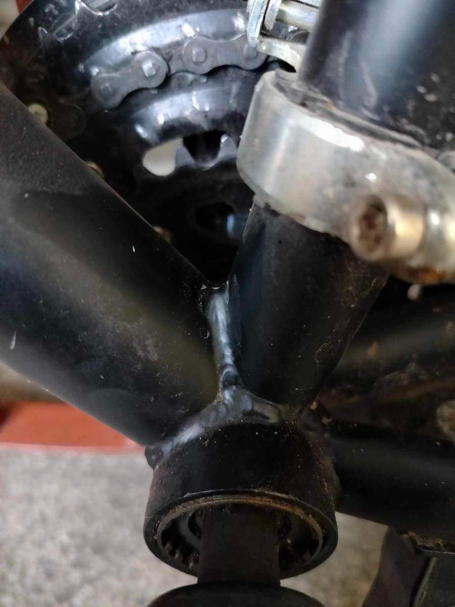 Ma moim rowerze (z dolnej półki VIPBike  cross 700) zauważyłem wykrzywioną rurę podsiodłową (na zdjęciu). Widziałem wątek poruszający podobny temat ale nie dowiedział on na moje pytanie. Otóż ponoć z prostowaniem ram stalowych nie jest tak źle jak z aluminiowymi. Z tego co wiem rama w moim rowerze jest stalowa. A pytane brzmi w jaki czy faktycznie da się to wyprostować i w jaki sposób to zrobić? Moim jedynym pomysłem jest wbicie fragmentu sztycy wgłąb rury (na tyle krótki żeby dało się wsunąć faktyczną sztyce z siodełkiem), tak aby trochę wyprostowała a trochę wzmocniła ten fragment ramy. W takim przypadku szyca ta musiałby zostać tam na zawsze. Czy widzicie inne sposoby? A może wykrzywienie to jest niegroźne i można z takim jeździć?