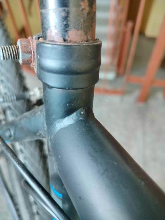 damyan006 Napisano 24 Października 2023 Napisano 24 Października 2023 (edytowane) Witam na forum. Ma moim rowerze (z dolnej półki VIPBike cross 700) zauważyłem wykrzywioną rurę podsiodłową (na zdjęciu). Widziałem wątek poruszający podobny temat ale nie dowiedział on na moje pytanie. Otóż ponoć z prostowaniem ram stalowych nie jest tak źle jak z aluminiowymi. Z tego co wiem rama w moim rowerze jest stalowa. A pytane brzmi w jaki czy faktycznie da się to wyprostować i w jaki sposób to zrobić? Moim jedynym pomysłem jest wbicie fragmentu sztycy wgłąb rury (na tyle krótki żeby dało się wsunąć faktyczną sztyce z siodełkiem), tak aby trochę wyprostowała a trochę wzmocniła ten fragment ramy. W takim przypadku szyca ta musiałby zostać tam na zawsze. Czy widzicie inne sposoby? A może wykrzywienie to jest niegroźne i można z takim jeździć? Pozdrawiam Edytowane 24 Października 2023 przez damyan006 Cytuj