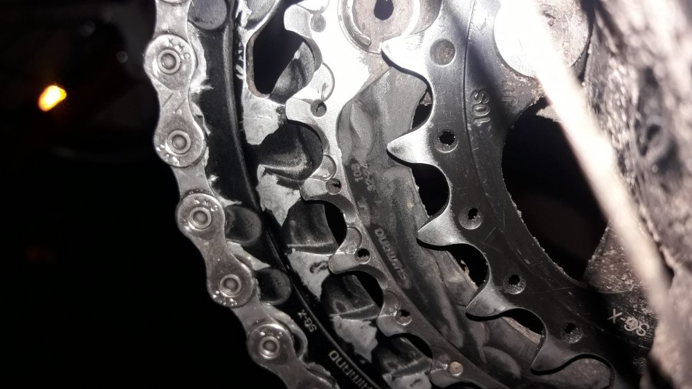 TheJW Napisano 5 Lutego 2018 Napisano 5 Lutego 2018 (edytowane) Panowie, wcześniej już wrzucałem zdjęcia napędu, ale w związku z zajechanym blatem nie było wiadomo, dlaczego łańcuch przeskakuje. Teraz wymieniłem blaty i nowy łańcuch przeskakuje na 8 zębatkach z tyłu. Jeszcze raz wrzucam zdjęcia kasety, po lekkim spiłowaniu zadziorów. Może nie wygląda, a jednak trup... Widać, jak kiepsko układa się łańcuch. Edytowane 5 Lutego 2018 przez TheJW Cytuj