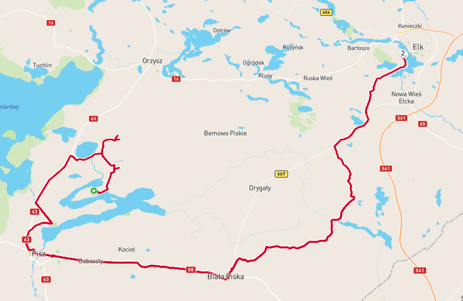 spidelli Napisano 16 Lutego 2025 Napisano 16 Lutego 2025 (edytowane) Drugi dzień, widać jak 2 razy wjeżdżaliśmy na poligon, raz nas wartownicy zawrócili (Rostki) A mieliśmy z Pilchów do Ełku dotrzeć. Tymczasem wróciliśmy do Pisza, i krajówką do Białej Piśki A wg Stravy w Łysoniach w lewo i na Nowe Guty, potem Orzysz i Ełk: Podejrzewam, że droga w Łysoniach nie wyglądała zbyt zachęcająco a nie chciałem już kolejny raz wracać, stąd decyzja o jeździe na Pisz. Chociaż to co leci jako prosta niemal droga od Orzysza do Pisza, to krajowa 16-ka Więc średnio na jeża, jak to się kiedyś mawiało.... No ale co się odwlecze, to nie uciecze.... Edyta: @chudzinki Wybaczysz dziadkowi, że go wzięło na wspominki? Edytowane 16 Lutego 2025 przez spidelli Cytuj