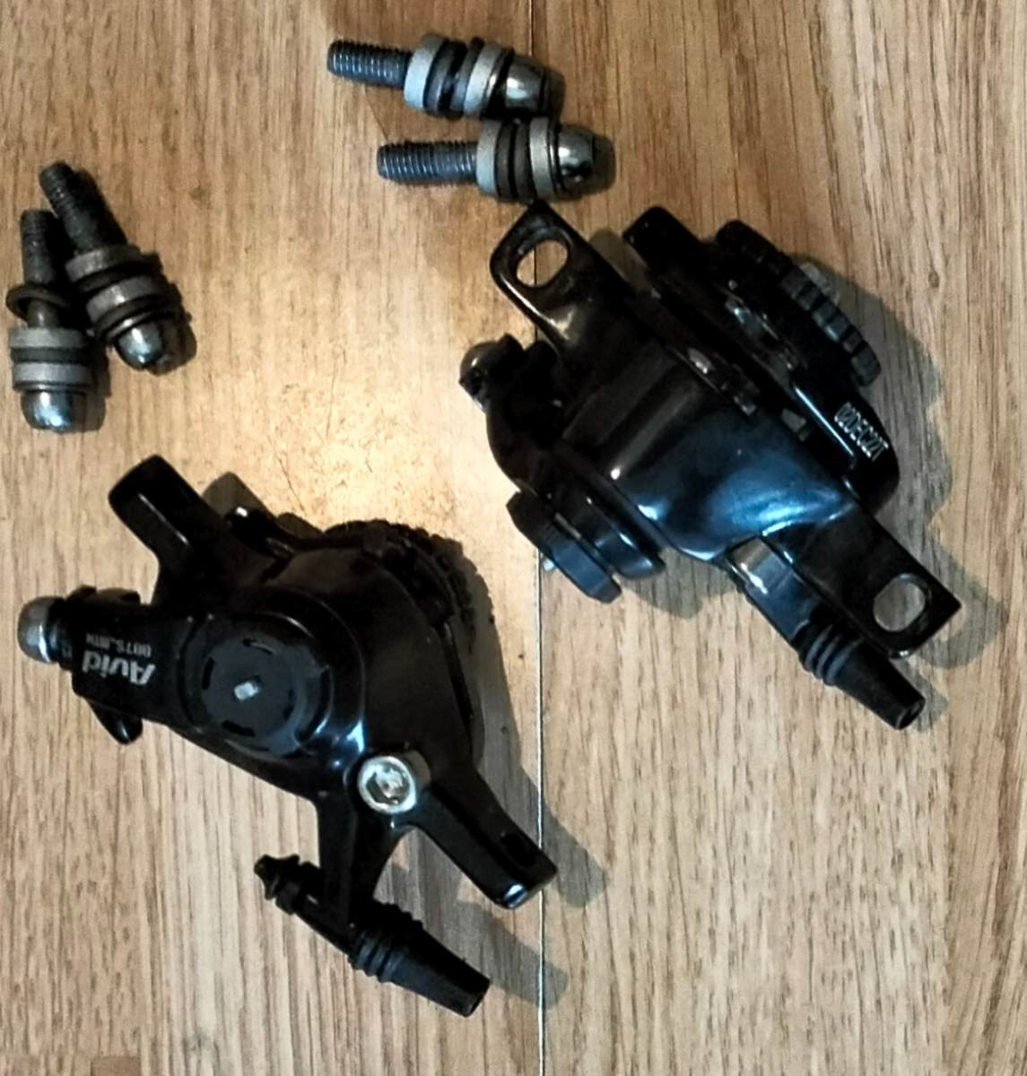 Miro1970 Napisano 31 Marca 2025 Napisano 31 Marca 2025 (edytowane) Jeszcze jedna rzecz na sprzedaż z nietrafionego projektu, który opisałem w temacie Marin Kentfield. Kompletny zestaw hamulcowy o przebiegu absolutnie maks. 300 km. Hamulce Avid s-mtn (dawniej oznaczane jako MTB), mocowanie PM. To jest droższa wersja light - zacisk ze śrubami i oryginalnymi okładzinami żywicznymi realnie waży niecałe 201 gramów. Klamki Avid Speed Dial 7 - najlepsze klamki do tych hamulców, z regulacją wychylenia klamki pod wielkość dłoni. Zdjęcie wyszło zamazane, jutro dam lepsze, białe plamy na klamce to refleksy światła. Stan klamek jest idealny. Linki, pancerze ciemnoszare niskokomoresyjne Jagwire CGX -SL. Długość pancerzy z końcówkami 177.5 cm oraz 83 cm. Linki dłuższe o kilka cm. Jak znajdę, dorzucę dodatkowe końcówki, a raczej znajdę.🙂 Stan zestawu praktycznie sklepowy. Hamują całkiem nieźle, ale niestety nie pasują, choćby wizualnie, do roweru, który zastąpi Kentfielda. Pojedynczy zacisk nowy kosztuje w promocji obecnie 300 zł Proponuję za cały zestaw 620 zł + ship. Możliwość rozsądnej negocjacji. Edytowane 31 Marca 2025 przez Miro1970