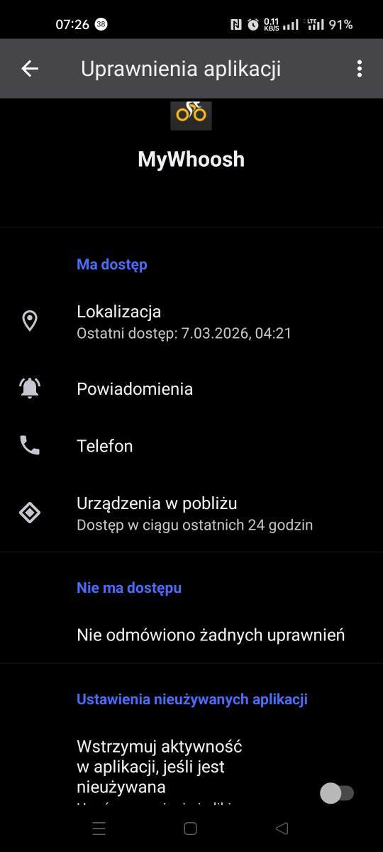 pierotez Napisano Wtorek o 07:54 Napisano Wtorek o 07:54 (edytowane) Zakupiony od znajomego trenażer WAHOO KICKR Core. Odpalona aplikacja Mywhoosh. Na Realme GT2 z Androidem 13. Objawy: za każdym razem zanim się połączy to 1,5-2 godzin prób i resetów zasilania w trenażerze! Jeżeli przez pierwsze 10x odpalało i zrobiłem jakieś jazdy z zapisem na strave to teraz już wogle nie odpala. Trenażera w aplikacji nie widać mimo że w ustawieniach bluetootha jest. Łączyło się to tylko i wyłącznie jak oprócz bt zachaczalem ikonkę nawigacji. Kolega od którego nabyłem ten trenażer używał go z Mywhooshem bez problemów na nowszym Samsungu ( zdaje się a52). W ustawieniach Androida zrobiłem co mogłem, wszystko aktywne: Co jeszcze mogę zrobić? Przeinstalować apke mywhoosh, spróbować na innym smartfonie ( motka, Xiaomi, może Samsung się znajdzie)? Grzebać głębiej w nakładce od Realmy GT2 (tutaj poważniejsze forum się przyda bo ja tego..)?! Edytowane Wtorek o 07:57 przez pierotez Cytuj
