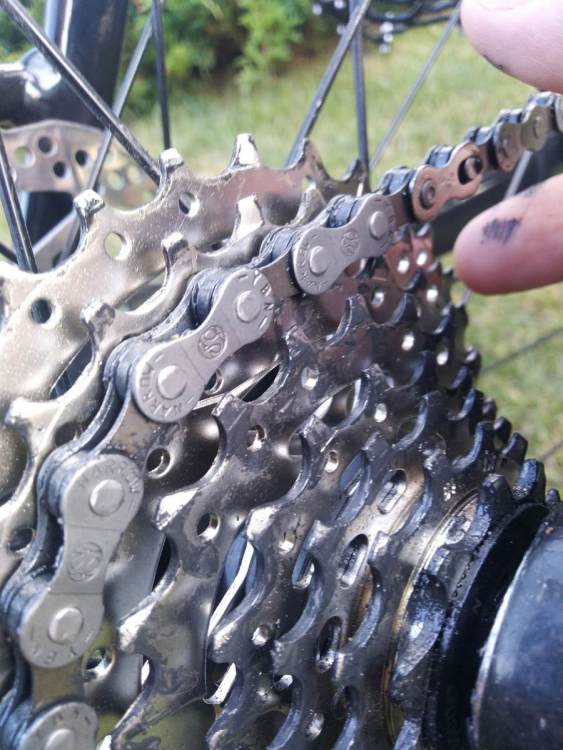 W załączniku fotki mojego napędu po ok. 100 km w błocie, trawie i ulewie. Napęd cały czas pracował cicho. Nawet tony trawy (to co widać w kołeczku to końcówka czyszczenia) w kołeczkach i kasecie nie zrobiły większego wrażenia. Po spłukaniu wodą napęd był czysty. Za to wydłubanie trawy było sporym wyzwaniem ;)