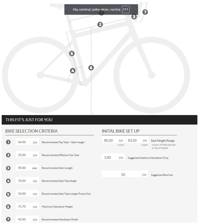 Ogólnie te wszystkie kalkulatory można sobie w buty wsadzić. Wypluwa Ci 55 efektywnej długości rury kiedy na takich rozmiarach jeżdżą goście po 180 wzrostu albo 64 rama+mostek kiedy ja przy 185-6 mam 665:)